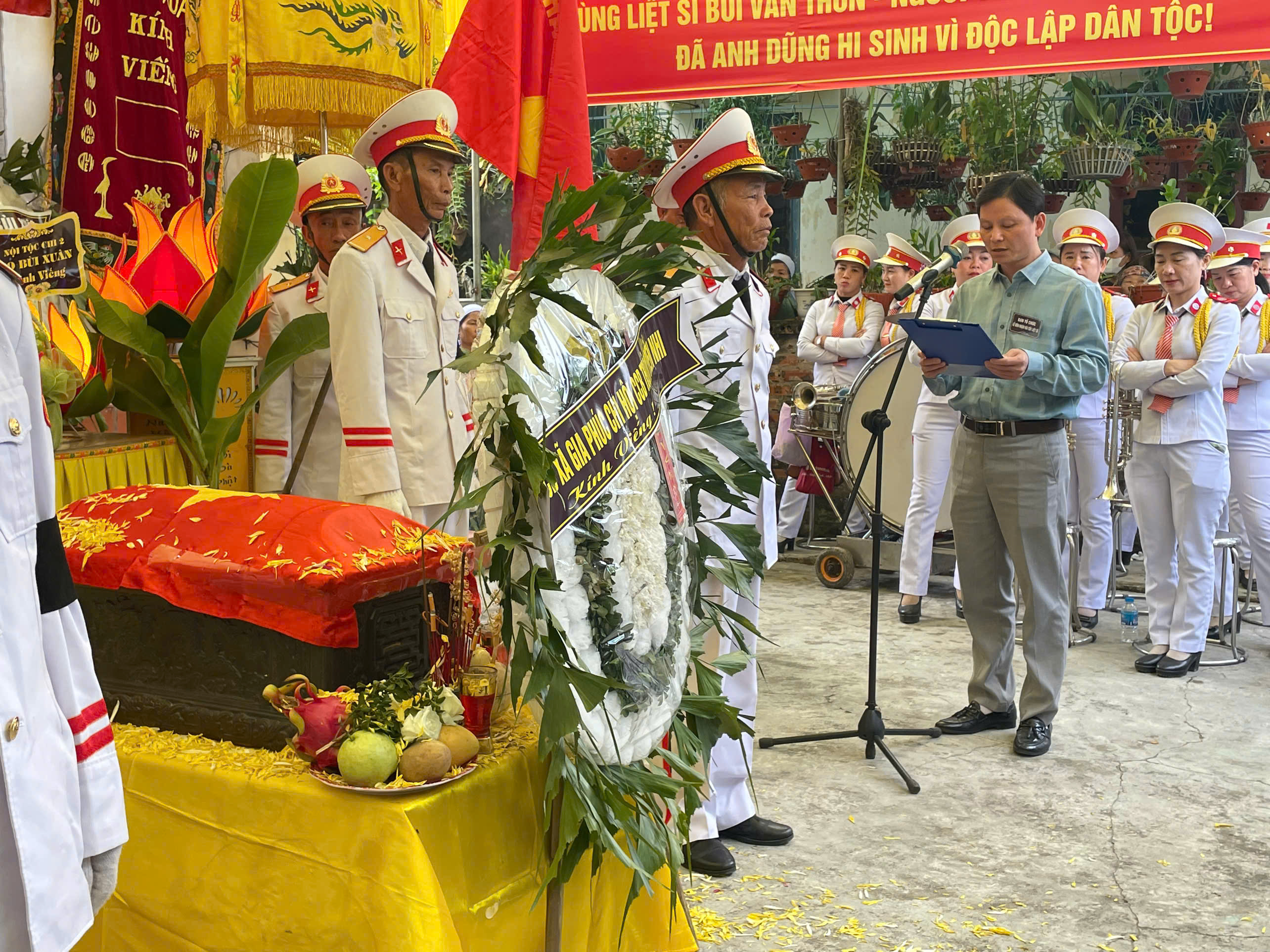 Tham dự buổi lễ có các đồng chí trong Thường trực Đảng ủy, Ban Thường vụ Đảng ủy, lãnh đạo HĐND – UBND – UB MTTQ Việt Nam xã, đại diện các ban ngành, đoàn thể của xã; cùng cấp ủy, chính quyền thôn Điền Nhi, dòng họ liệt sĩ và đông đảo bà con nhân dân trong thôn đến dự, viếng và tiễn đưa liệt sĩ về nơi an nghỉ cuối cùng.