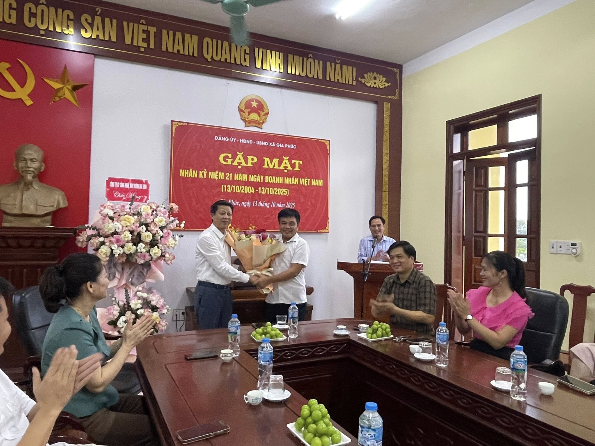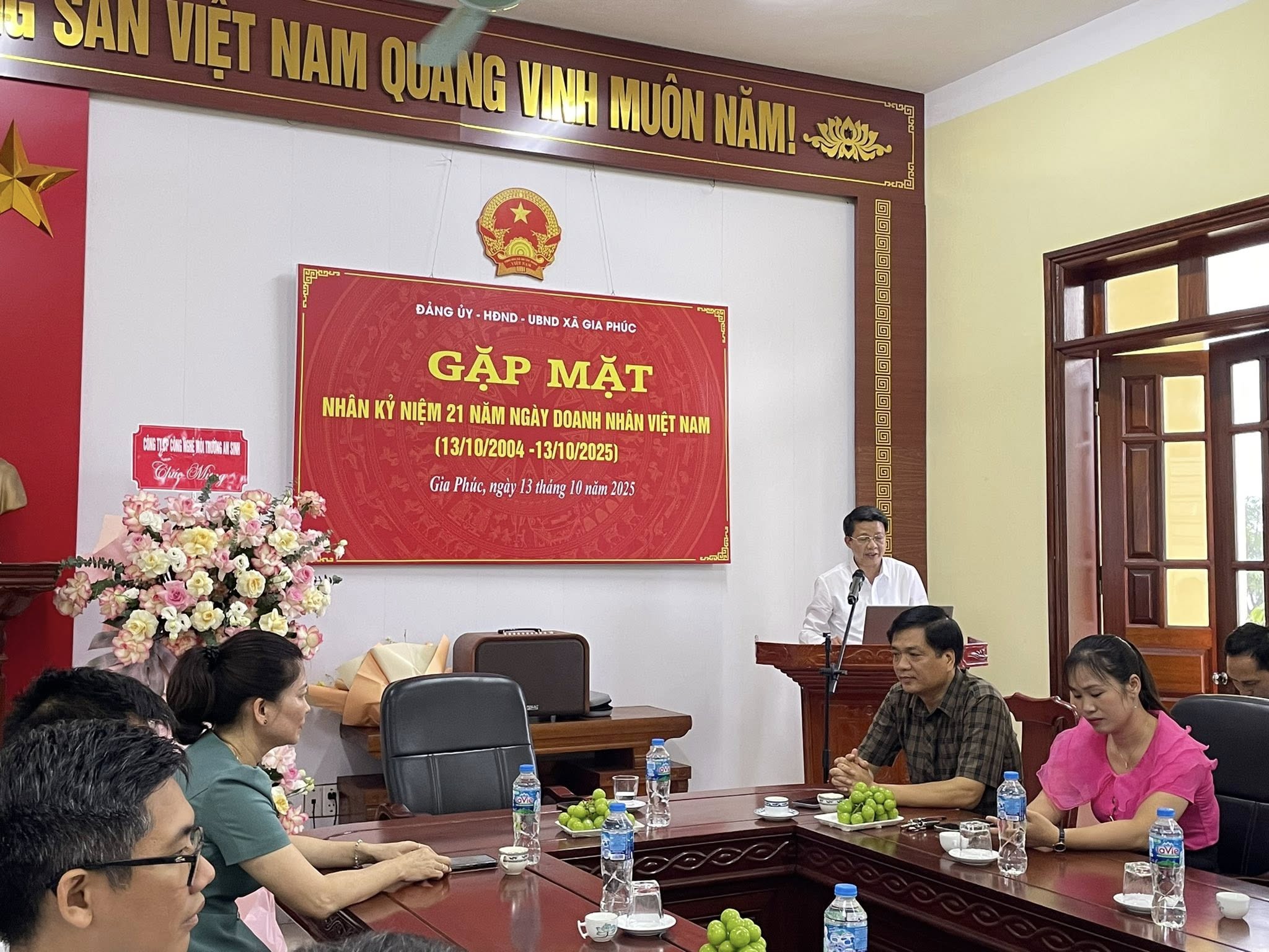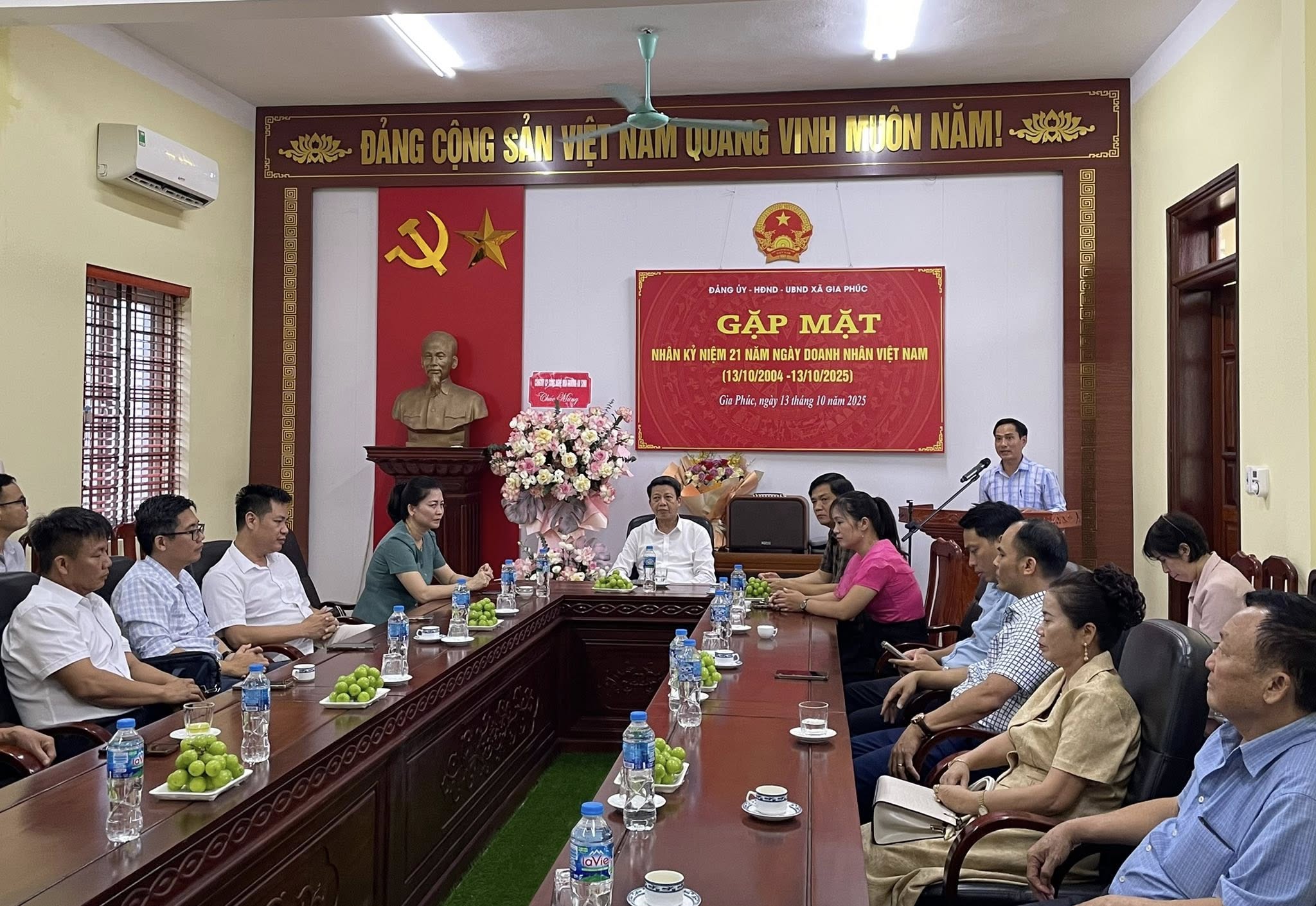Nhân kỷ niệm 21 năm Ngày Doanh nhân Việt Nam (13/10/2004 – 13/10/2025), chiều ngày 13/10/2025, tại phòng họp tầng 2 trụ sở Đảng ủy – HĐND – UBND xã, Đảng ủy xã Gia Phúc đã long trọng tổ chức buổi gặp mặt các doanh nghiệp, doanh nhân tiêu biểu đang hoạt động trên địa bàn xã.