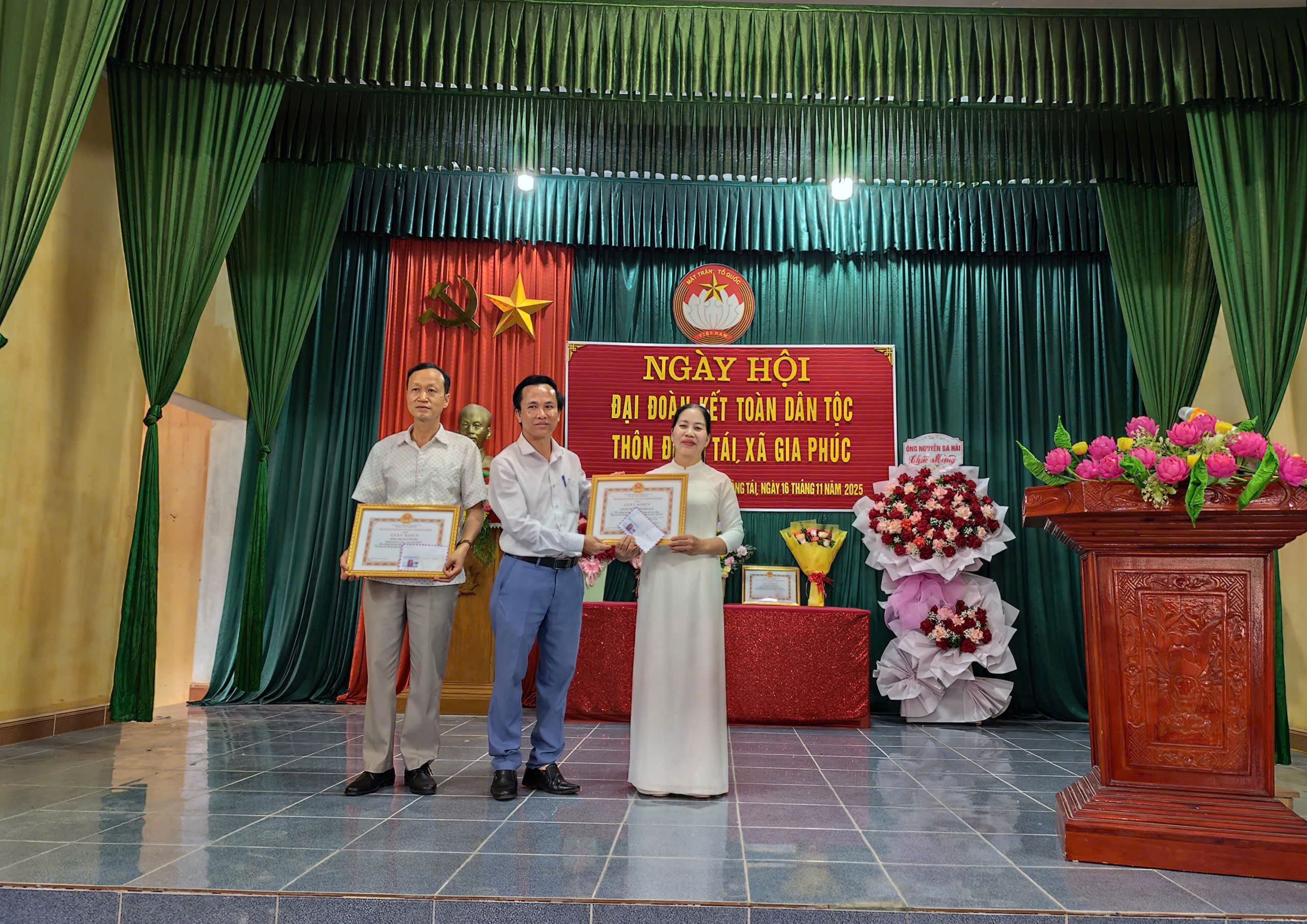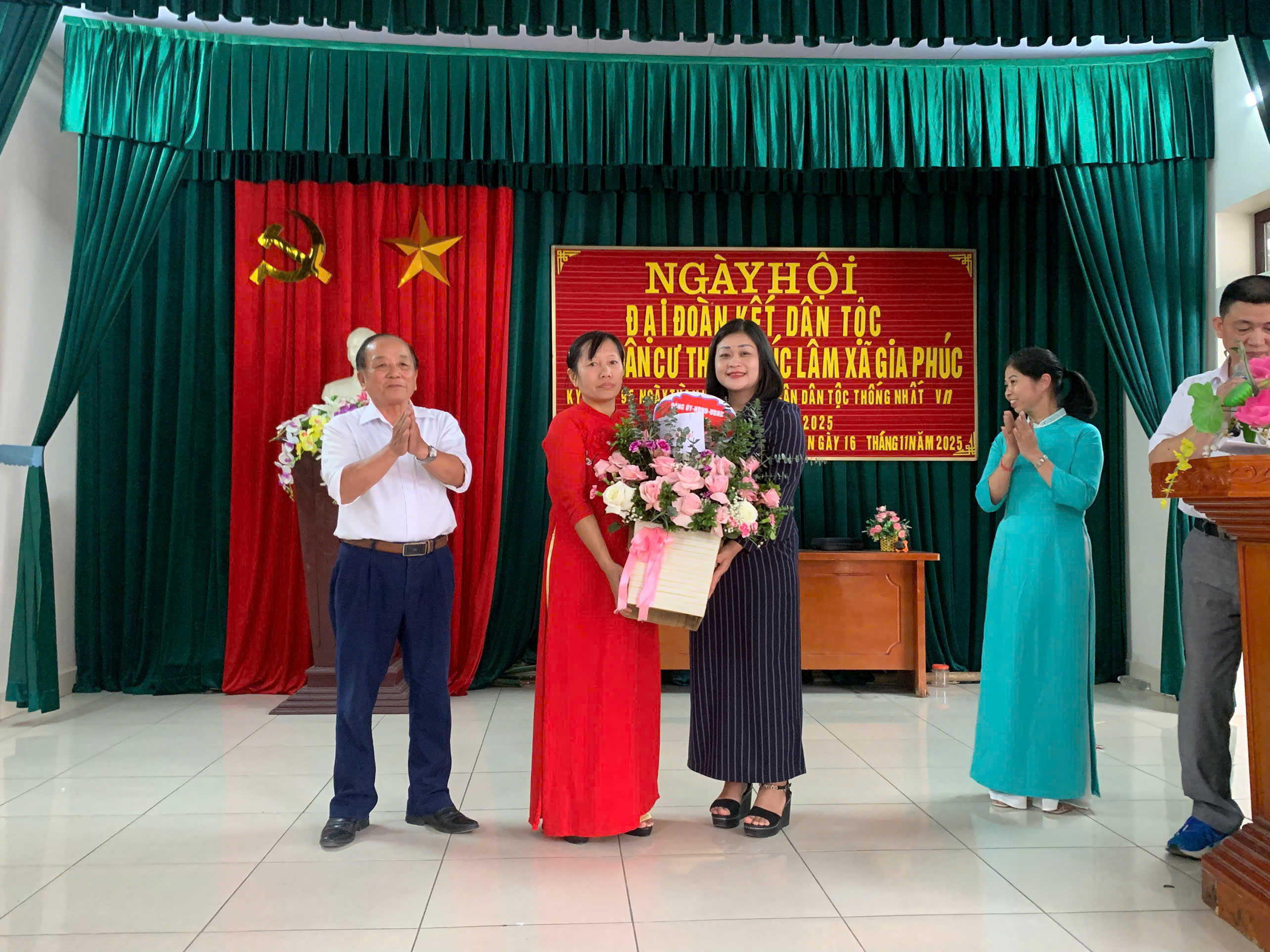 Đồng chí Đỗ Văn Tiến - Bí thư Đảng ủy - Chủ tịch HĐND xã, đồng chí Nguyễn Chính Thống - Phó bí thư Đảng ủy - Chủ tịch UBND xã, các đồng chí trong Thường trực Đảng ủy, HĐND, UBND, Ủy ban MTTQ xã cùng lãnh đạo các ban, ngành, đoàn thể đã có mặt tại tất cả 29 thôn chung vui cùng bà con. Sự hiện diện đầy đủ của lãnh đạo xã không chỉ mang tính biểu tượng mà còn khẳng định sự quan tâm đặc biệt, coi trọng ý nghĩa chính trị - xã hội sâu sắc của Ngày hội Đại đoàn kết – một hoạt động truyền thống nhằm khơi dậy tinh thần yêu nước, trách nhiệm cộng đồng, xây dựng quê hương Gia Phúc ngày càng giàu đẹp, văn minh. Tại mỗi thôn, lãnh đạo xã đã gửi lời thăm hỏi ấm áp, tặng hoa chúc mừng Ban Công tác Mặt trận và nhân dân, đồng thời biểu dương những tập thể, cá nhân tiêu biểu trong thực hiện các cuộc vận động lớn như “Toàn dân đoàn kết xây dựng nông thôn mới, đô thị văn minh”, “Vì người nghèo – Không để ai bị bỏ lại phía sau”, “Người Việt Nam ưu tiên dùng hàng Việt Nam”…