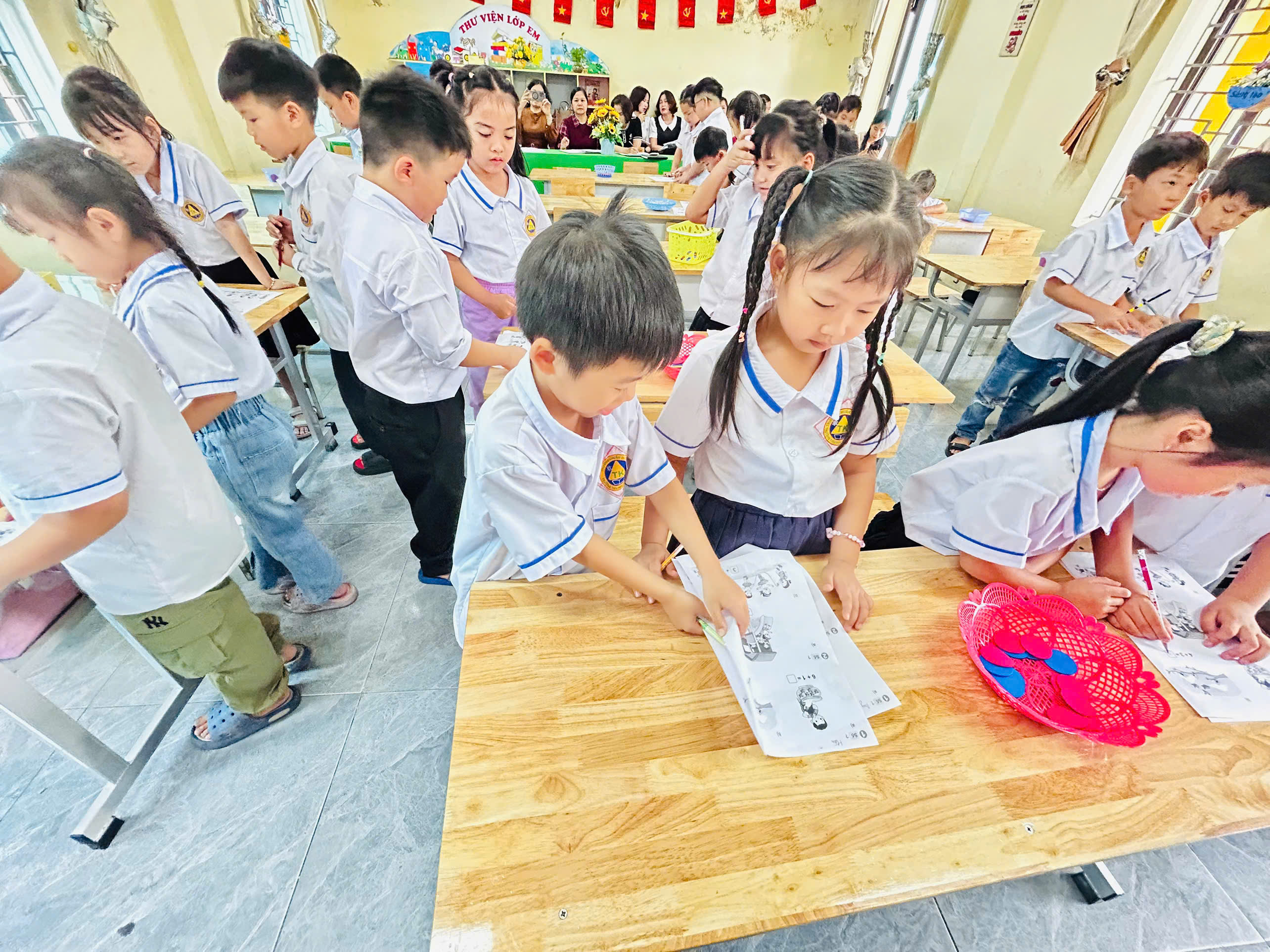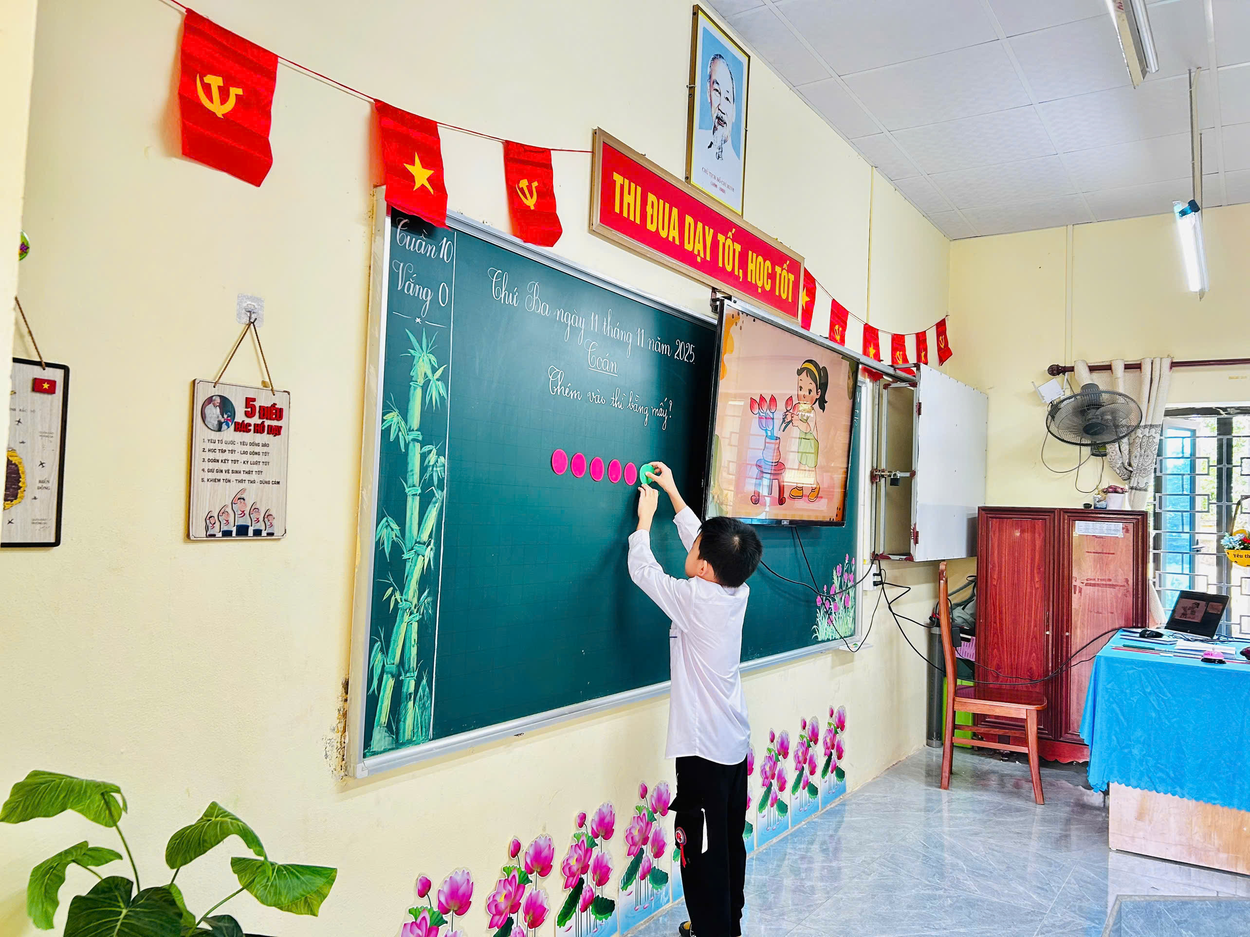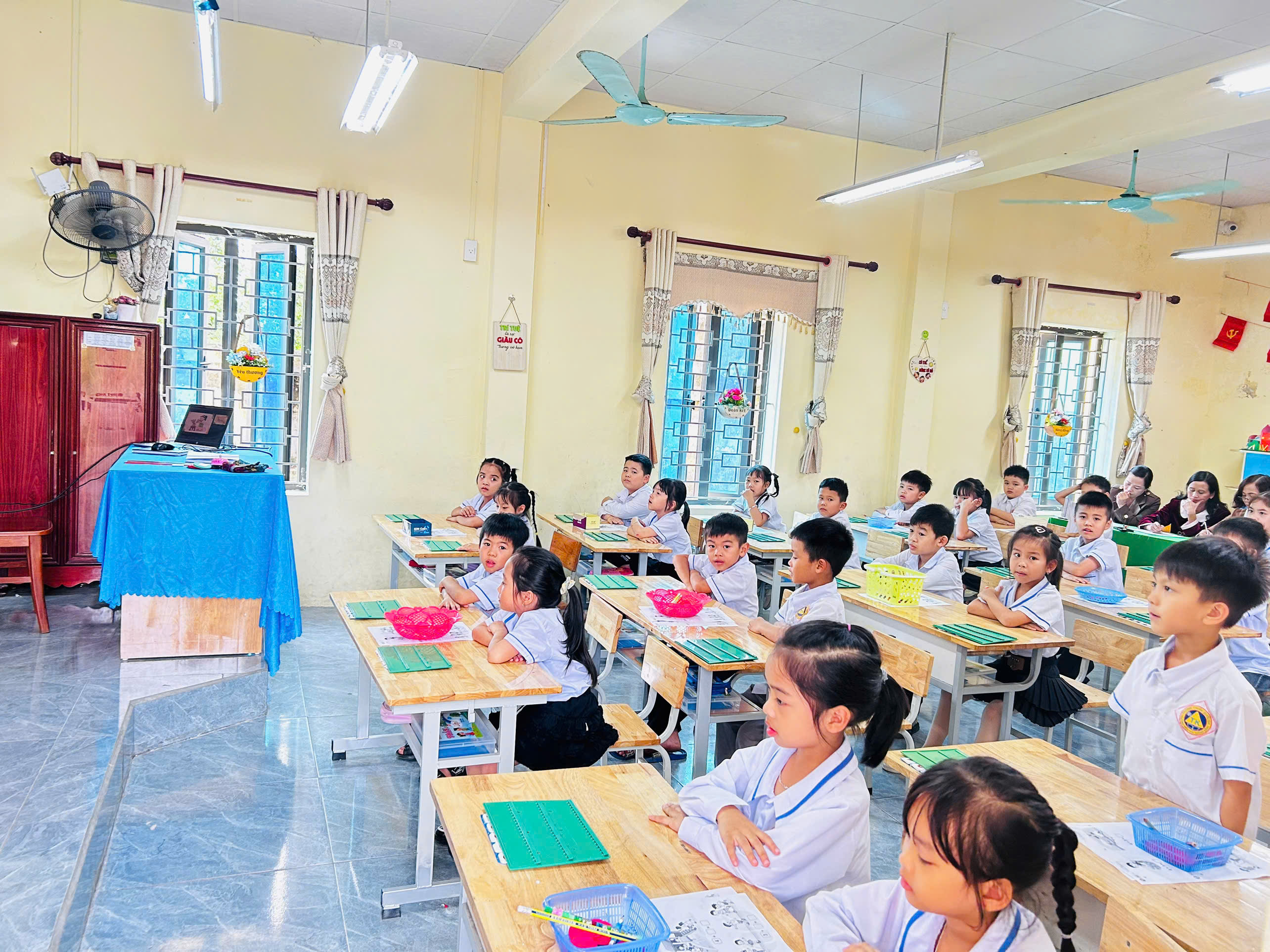 Ngay từ đầu giờ, không khí buổi sinh hoạt đã trở nên sôi nổi và đầy hứng khởi với tiết dạy minh họa bài Toán “Thêm vào thì bằng mấy?” do cô giáo Nguyễn Thị Hằng – giáo viên Trường Tiểu học Thống Kênh – trực tiếp giảng dạy cho học sinh lớp 1A.