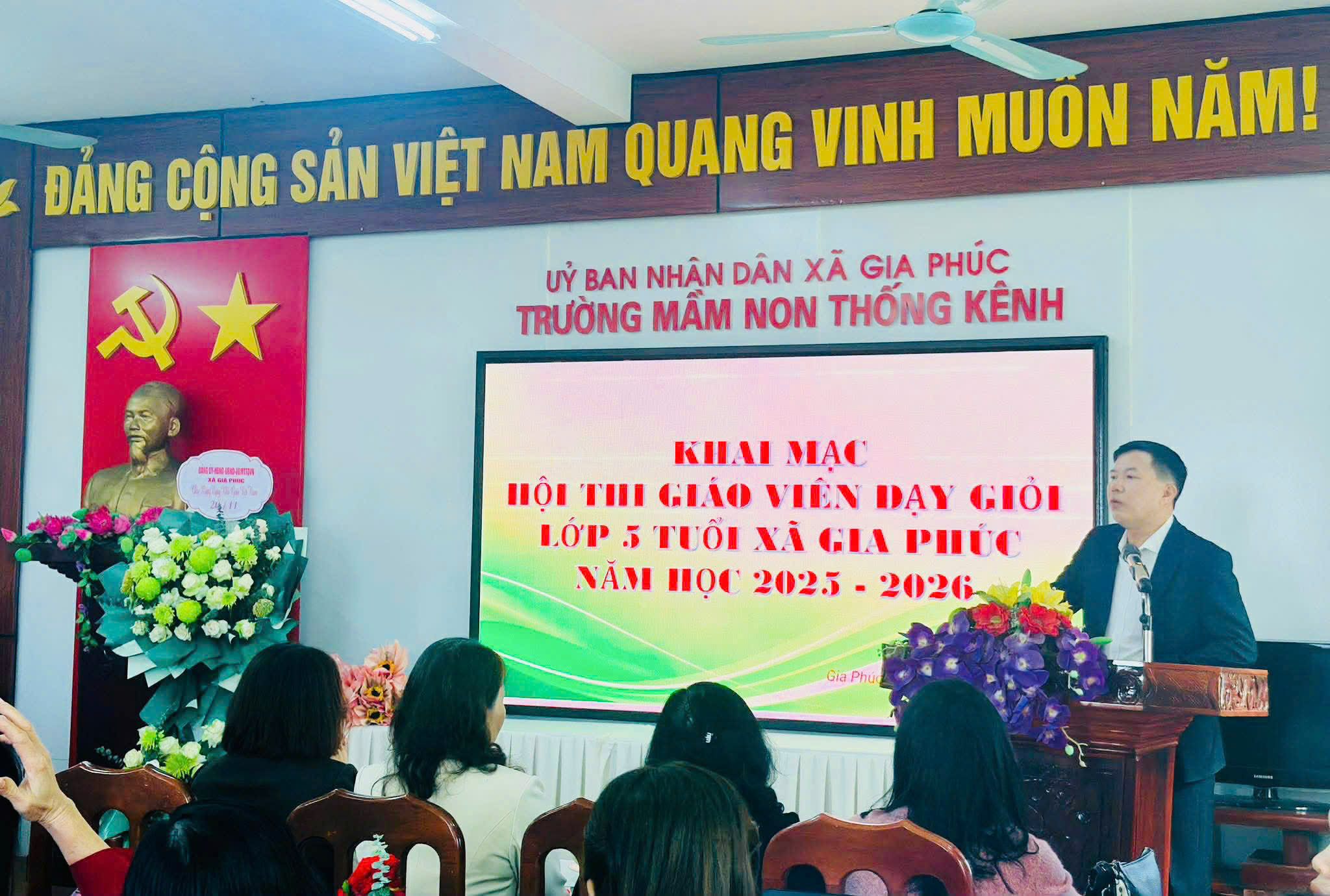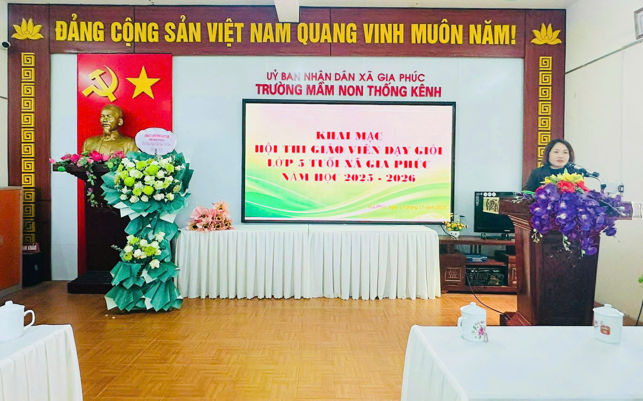 Sáng ngày 24/11/2025, tại Trường Mầm non Thống Kênh, Ban Tổ chức Hội thi giáo viên dạy giỏi cấp học mầm non xã Gia Phúc đã long trọng tổ chức Lễ Khai mạc Hội thi Giáo viên dạy giỏi lớp 5 tuổi năm học 2025–2026 và triển khai phần thi trình bày biện pháp của giáo viên.