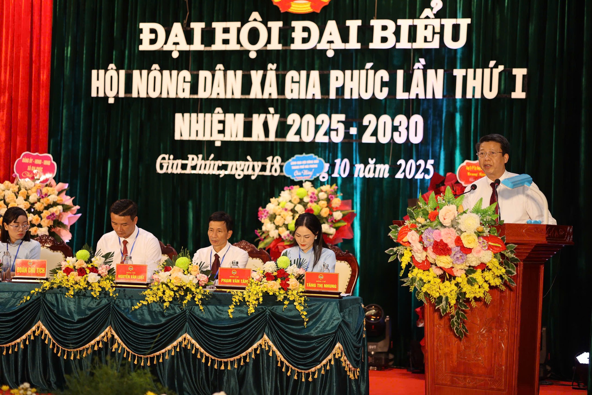 Phát biểu chỉ đạo tại Đại hội, đồng chí Đỗ Văn Tiến – Bí thư Đảng ủy, Chủ tịch HĐND xã Gia Phúc ghi nhận, biểu dương và đánh giá cao những kết quả mà Hội Nông dân xã đã đạt được trong thời gian qua. Đồng chí Bí thư Đảng ủy đề nghị Ban Chấp hành Hội Nông dân xã khóa mới tiếp thu nghiêm túc các ý kiến chỉ đạo của cấp ủy, xây dựng chương trình hành động cụ thể, thiết thực, bám sát nghị quyết Đại hội, tạo chuyển biến rõ nét trong hoạt động Hội và phong trào nông dân, góp phần thực hiện thắng lợi Nghị quyết Đại hội Đảng bộ xã Gia Phúc lần thứ I, nhiệm kỳ 2025 – 2030.