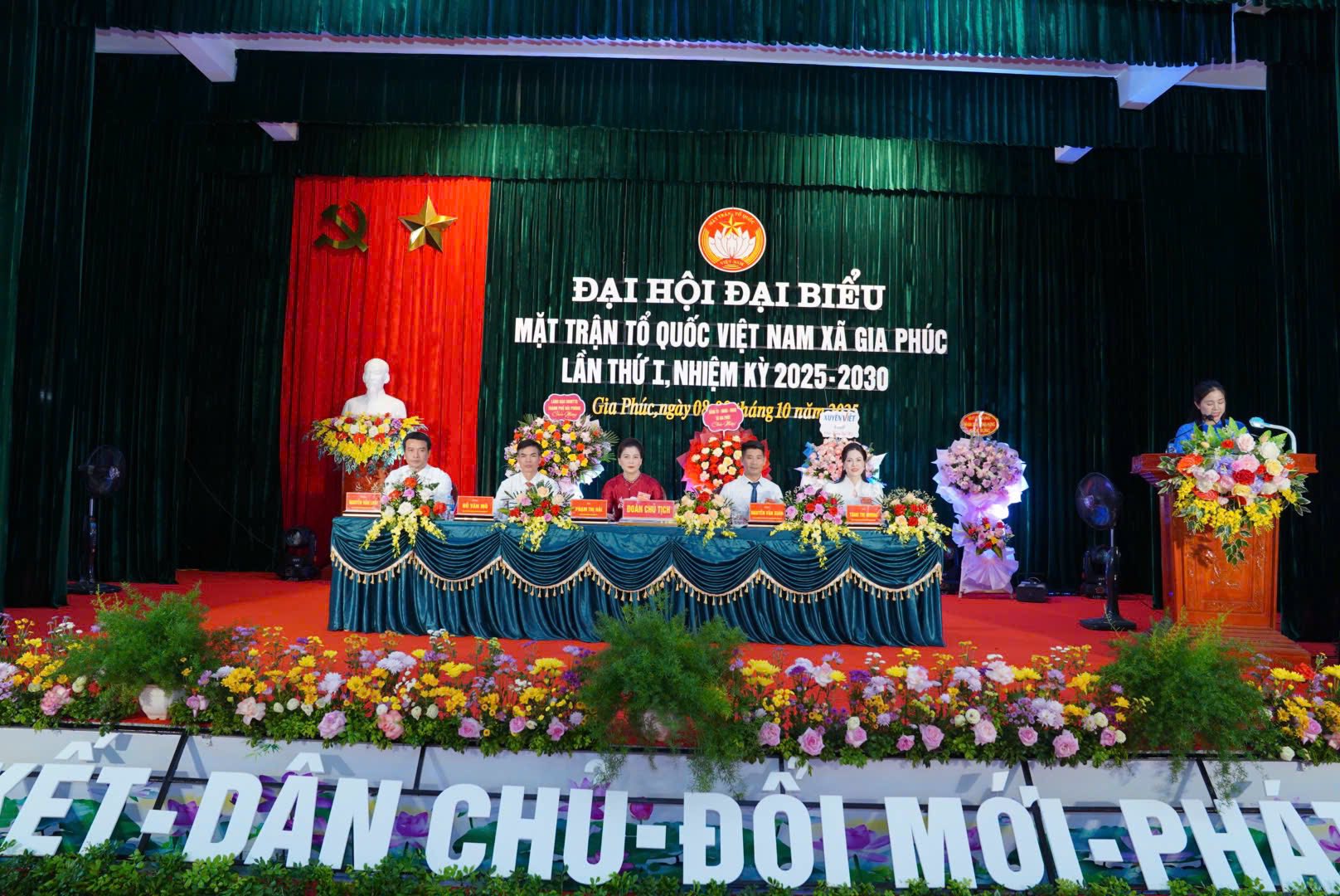 Với tinh thần nghiêm túc, dân chủ, đoàn kết và trách nhiệm cao, trong 2 ngày 08 và 09 tháng 10 năm 2025, Đại hội Đại biểu Mặt trận Tổ quốc Việt Nam xã Gia Phúc lần thứ I, nhiệm kỳ 2025-2030 đã diễn ra thành công tốt đẹp. Dự Đại hội có các đại biểu đại diện Ban Thường trực Ủy ban MTTQ Việt Nam thành phố, Tổ công tác số 03 UBMTTQ Việt Nam thành phố, Thường trực Đảng ủy; Ban chấp hành Đảng bộ, Thường trực HĐND, Lãnh đạo UBND xã, Bí thư chi bộ, Trưởng thôn, Trưởng Ban công tác Mặt trận thôn, và 200 đại biểu chính thức tham dự, đại diện cho các tổ chức thành viên, các Ban công tác Mặt trận các thôn, các cá nhân tiêu biểu và các chức sắc tôn giáo, thể hiện sự tham gia rộng rãi và đại diện toàn diện cho các tầng lớp nhân dân trên địa bàn xã.
