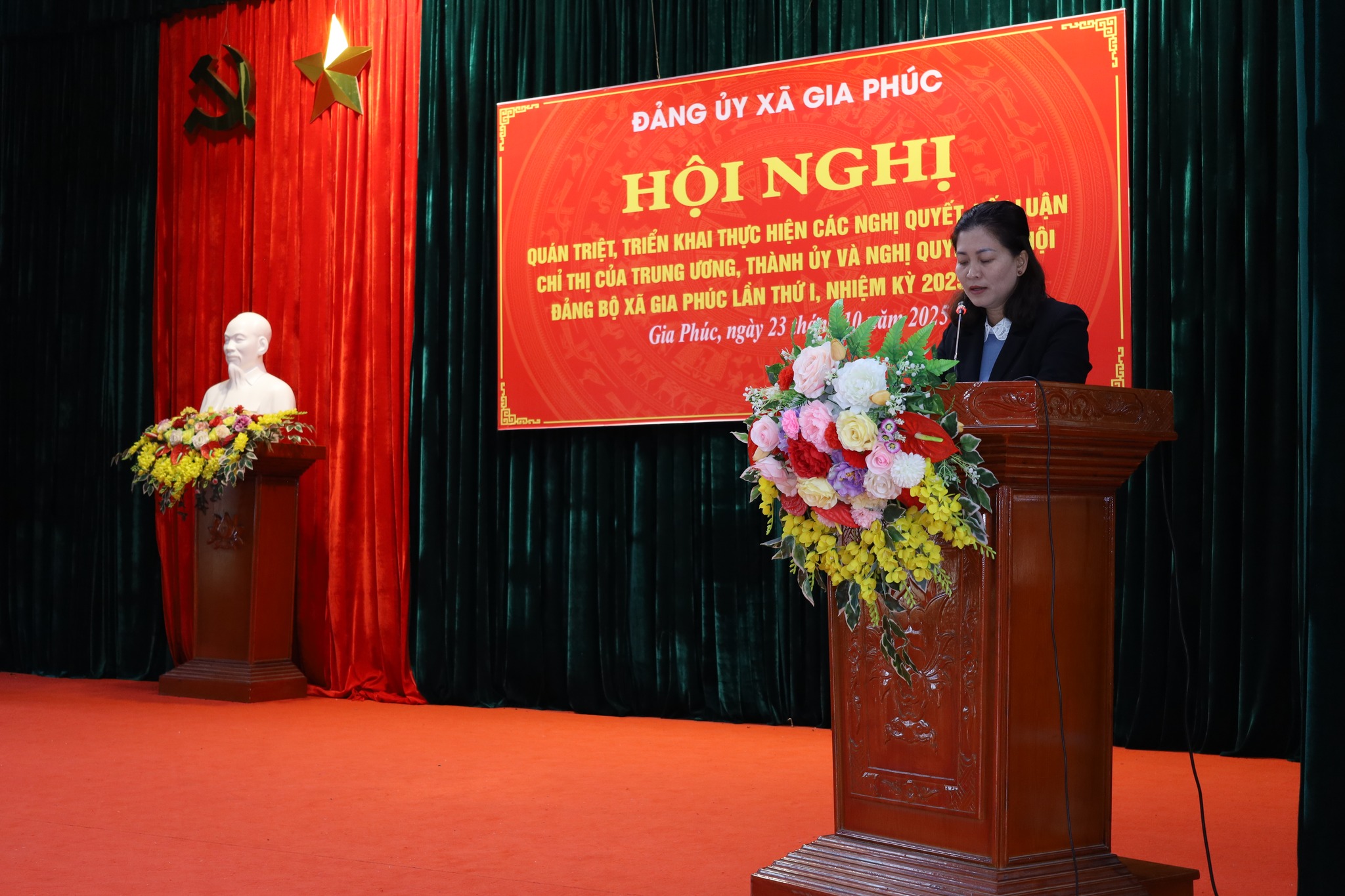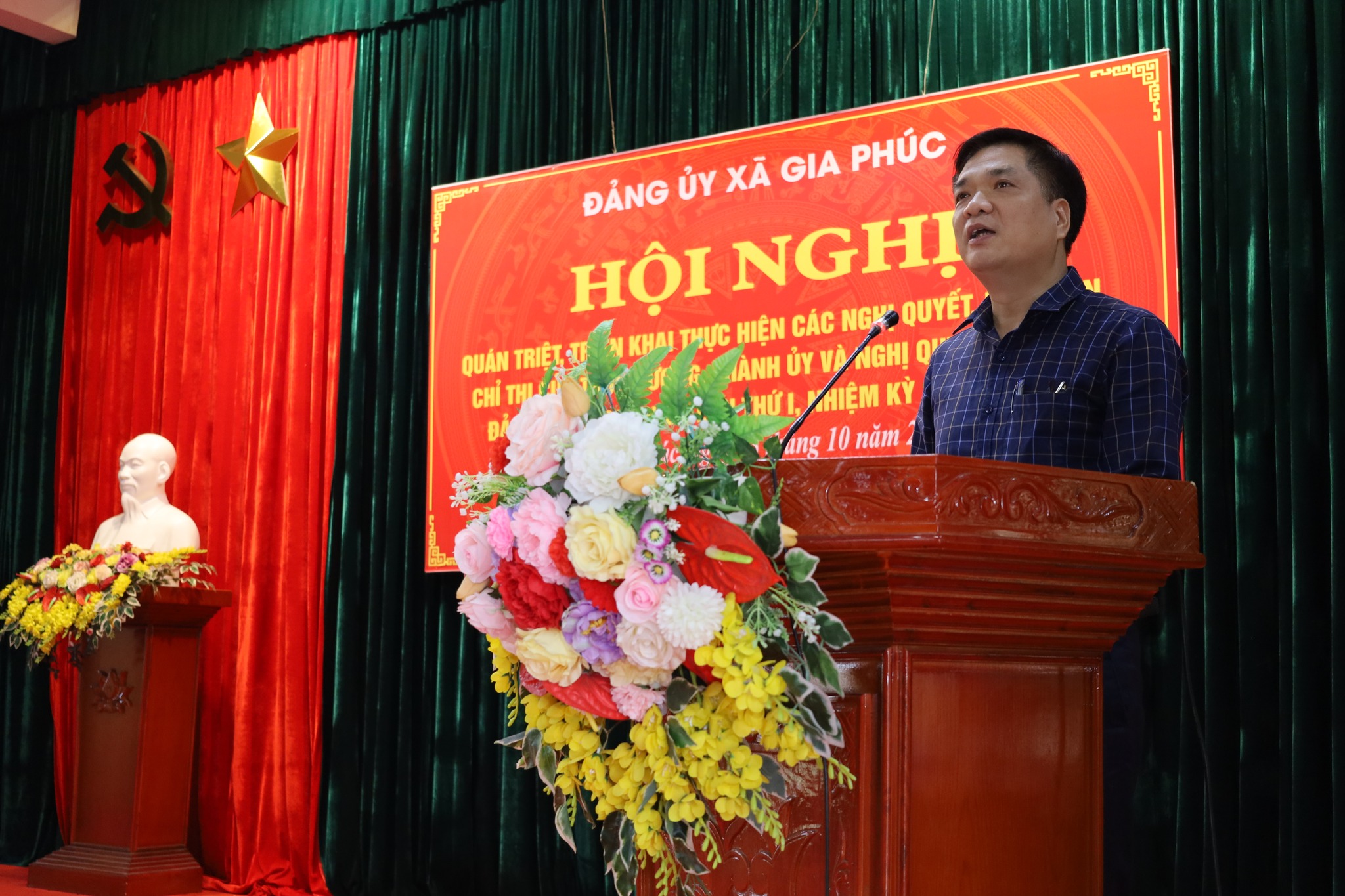 ĐẢNG ỦY XÃ GIA PHÚC TỔ CHỨC HỘI NGHỊ NGHIÊN CỨU, QUÁN TRIỆT, TUYÊN TRUYỀN VÀ PHỔ BIẾN CÁC NGHỊ QUYẾT, CHỈ THỊ, KẾT LUẬN, KẾ HOẠCH CỦA TRUNG ƯƠNG, THÀNH ỦY VÀ ĐẢNG ỦY XÃ