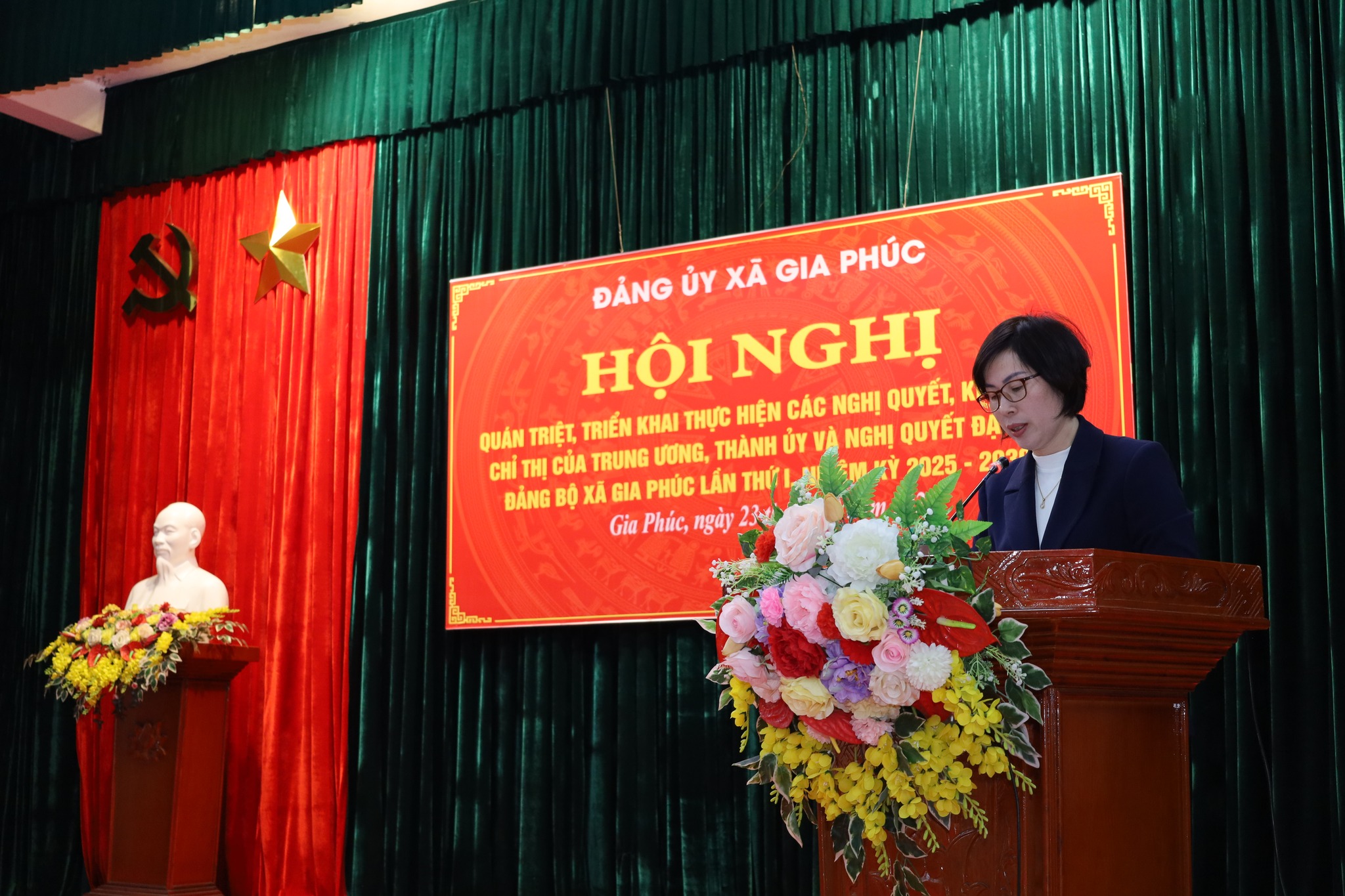 Hội nghị nghiên cứu, quán triệt, tuyên truyền và phổ biến các Nghị quyết, Chỉ thị, Kết luận, Kế hoạch của Trung ương, Thành ủy và Đảng ủy xã Gia Phúc đã thành công tốt đẹp, góp phần củng cố niềm tin của cán bộ, đảng viên và nhân dân, tạo động lực mới trong thực hiện các mục tiêu phát triển của địa phương trong giai đoạn mới.