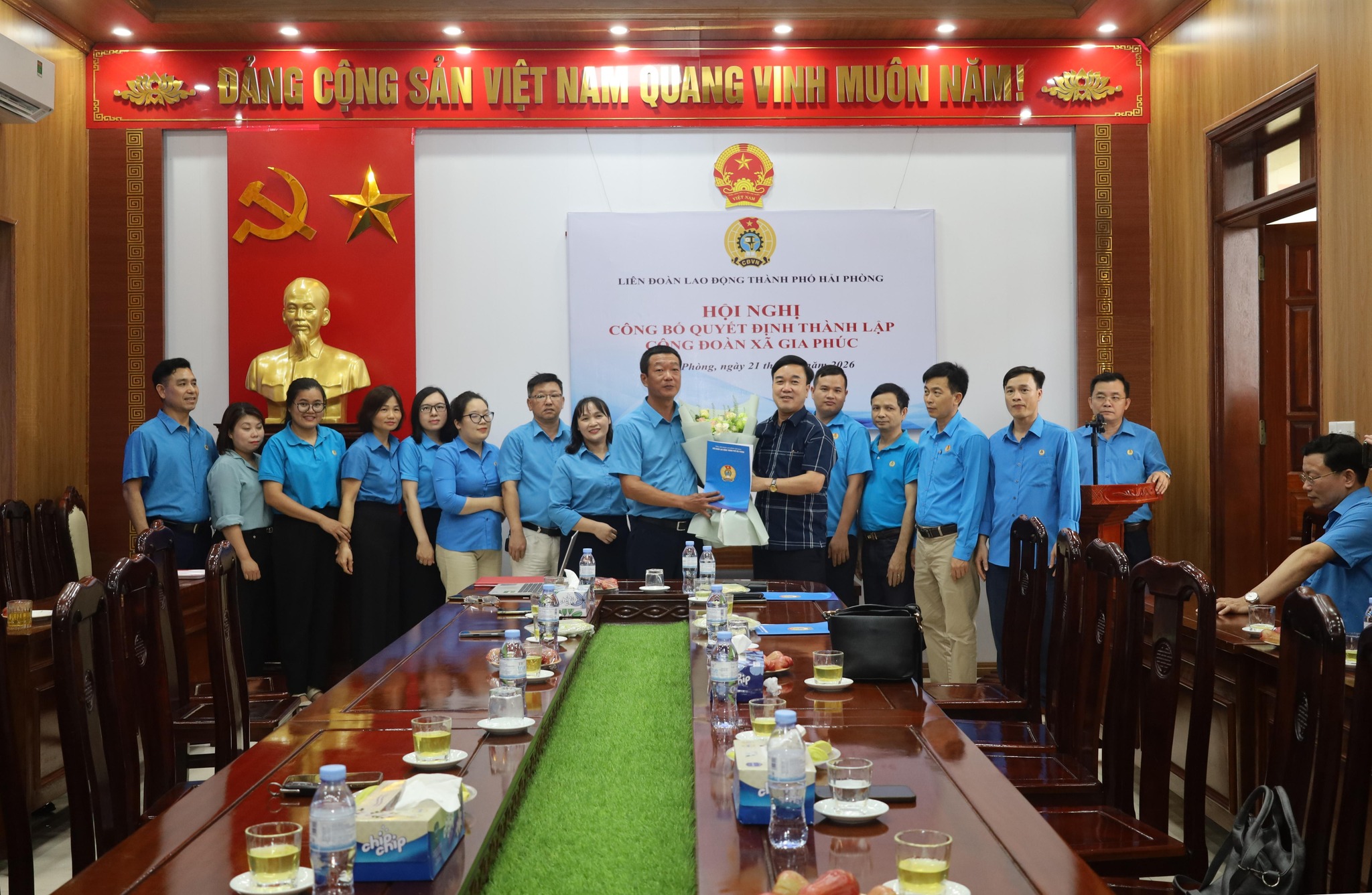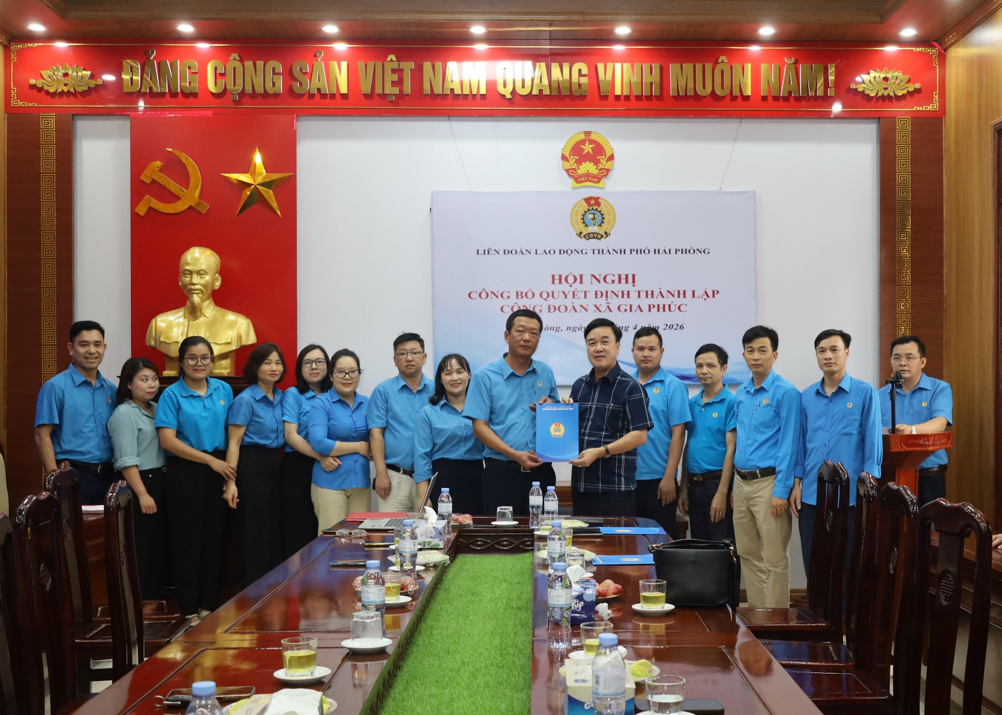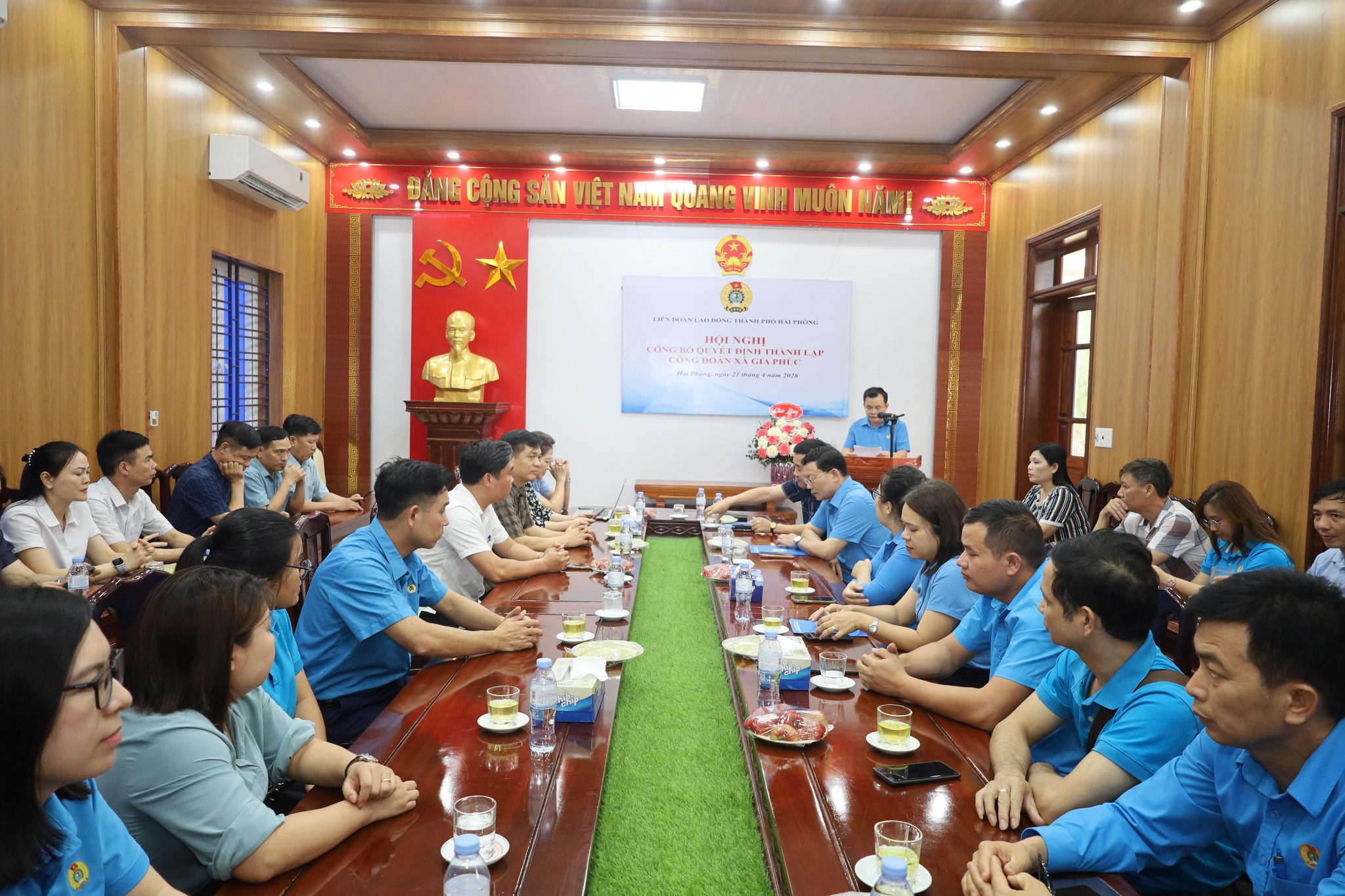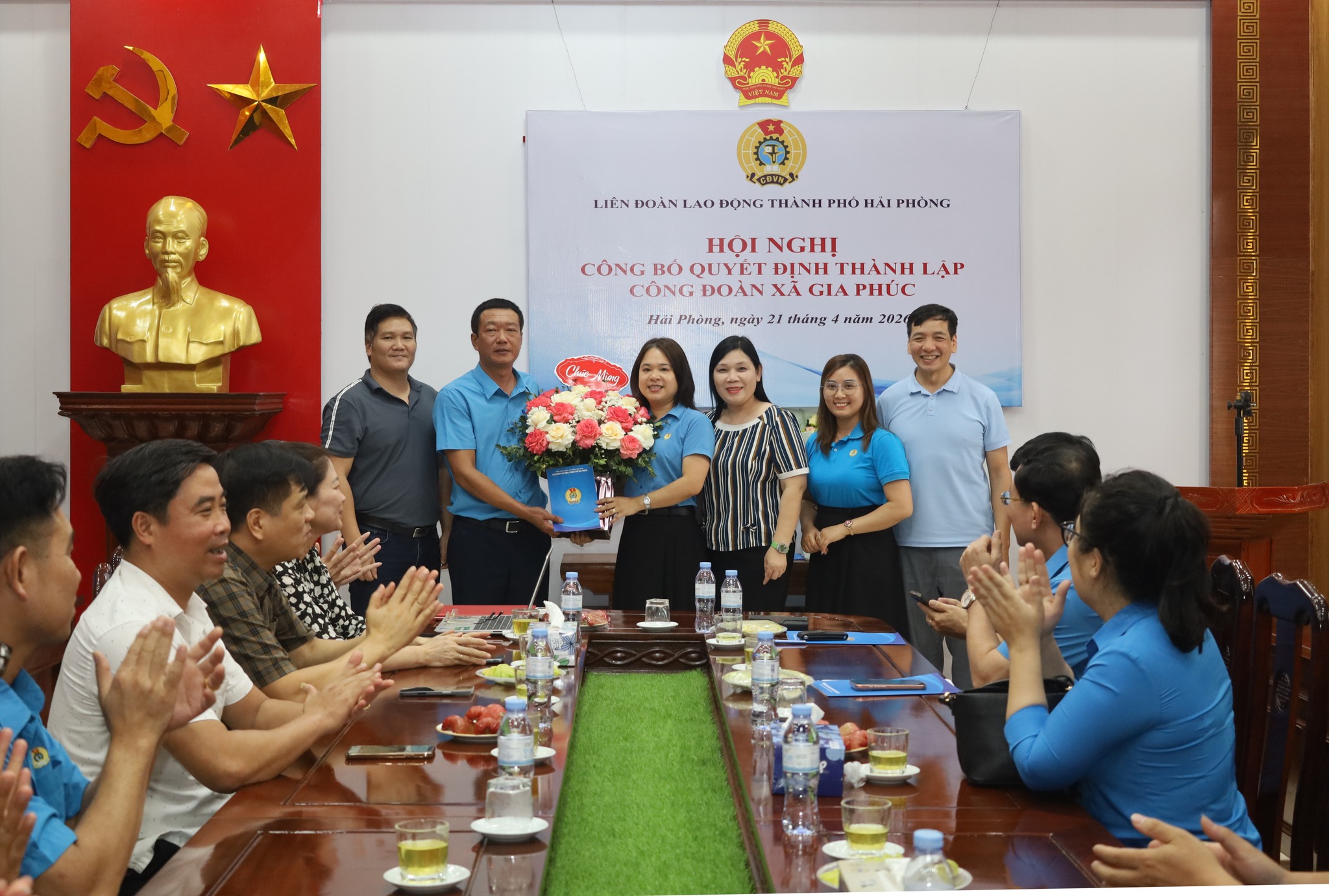 LIÊN ĐOÀN LAO ĐỘNG THÀNH PHỐ HẢI PHÒNG TỔ CHỨC HỘI NGHỊ CÔNG BỐ QUYẾT ĐỊNH THÀNH LẬP CÔNG ĐOÀN XÃ GIA PHÚC.