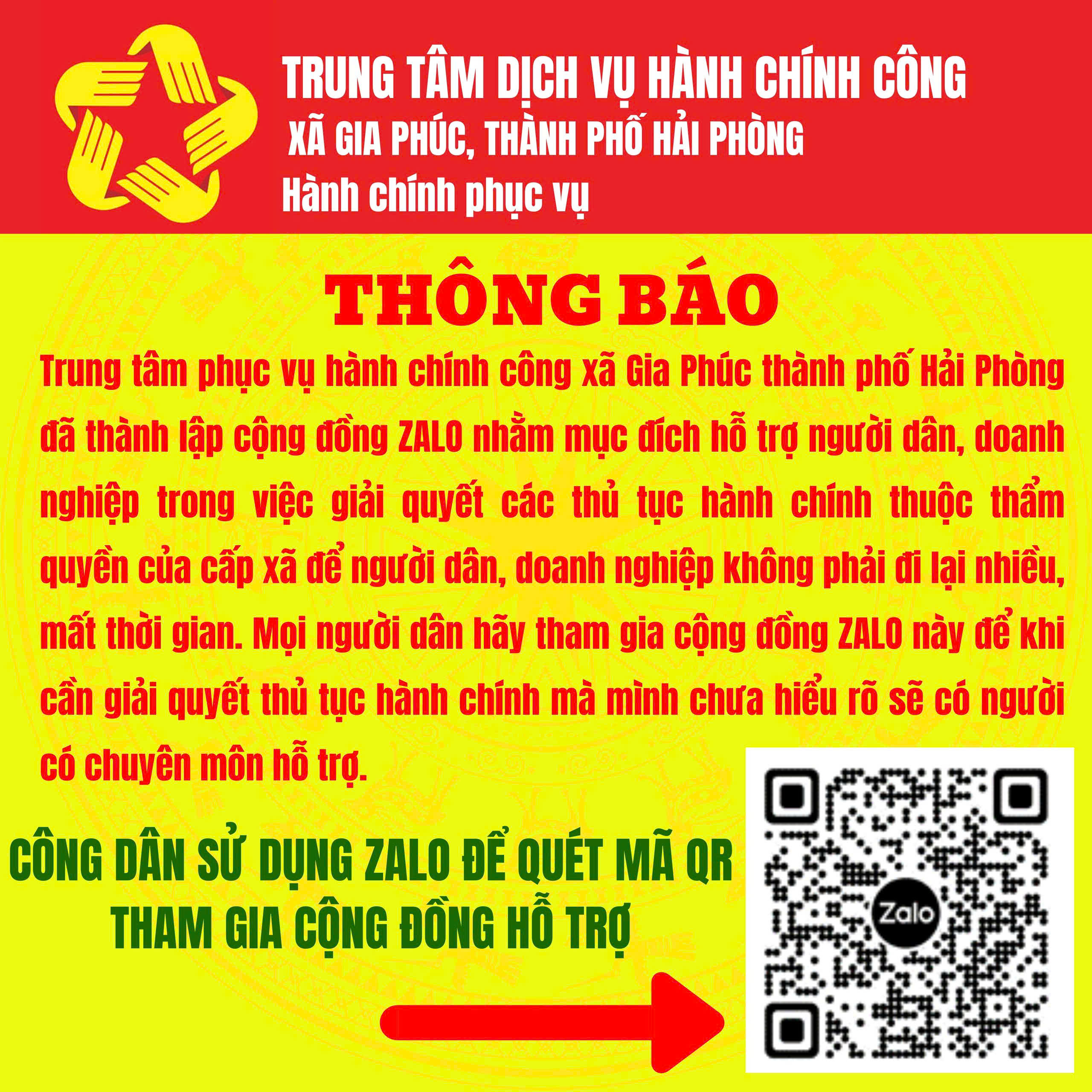 TRUNG TÂM PHỤC VỤ HÀNH CHÍNH CÔNG XÃ GIA PHÚC THÔNG BÁO HỖ TRỢ NGƯỜI DÂN, DOANH NGHIỆP GIẢI QUYẾT TTHC QUA NHÓM ZALO CỘNG ĐỒNG