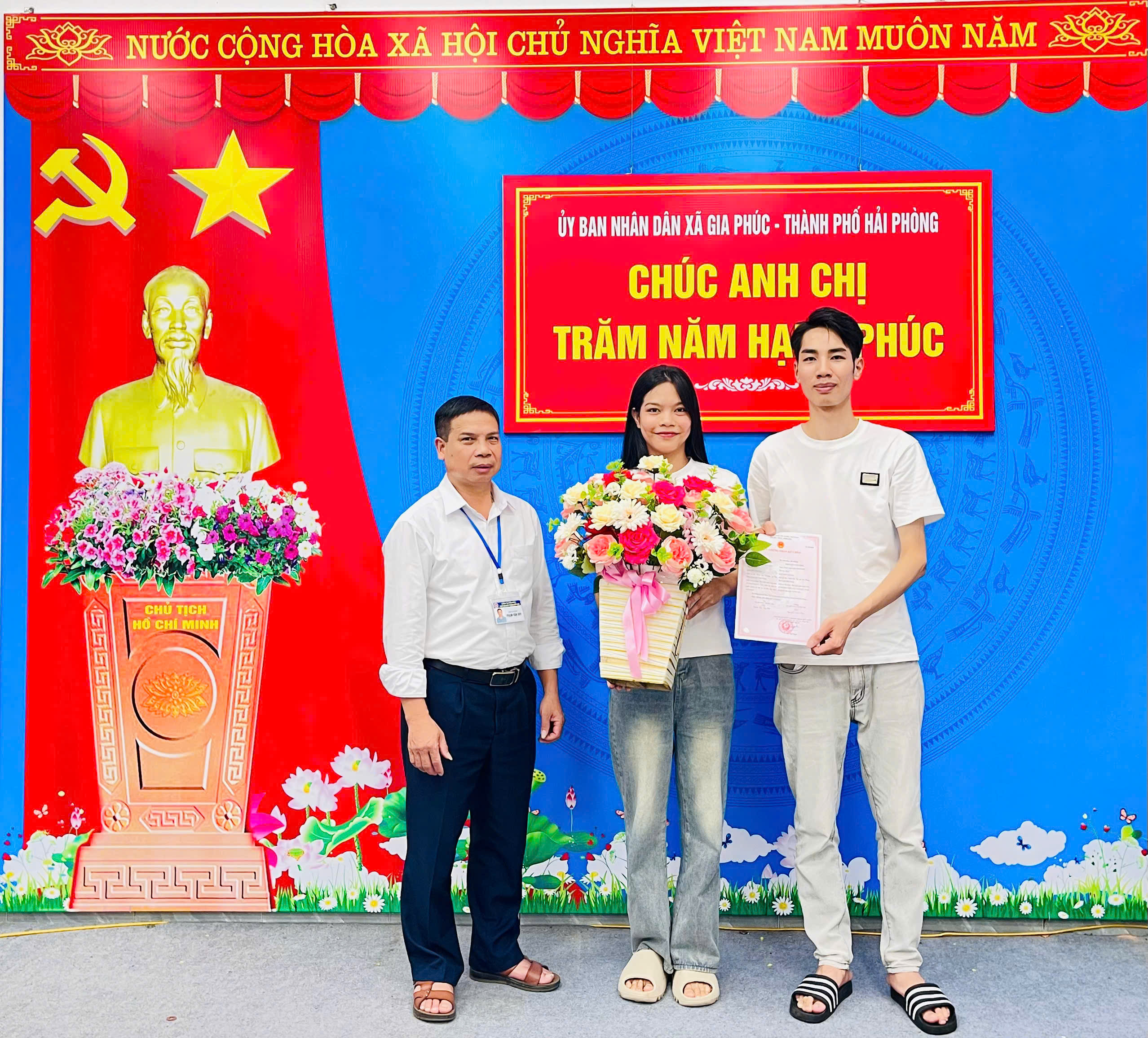 Trong thời gian qua, tại Trung tâm Phục vụ Hành chính công của xã, lãnh đạo UBND xã và lãnh đạo Trung tâm Phục vụ Hành chính công xã Gia Phúc đã trực tiếp trao Giấy chứng nhận kết hôn lần đầu cho các cặp đôi và trao Giấy khai sinh cho công dân mới chào đời ngay tại trung tâm. Cùng với việc trao kết quả, đại diện Ủy ban nhân dân xã đã gửi thư và lẵng hoa chúc mừng đến các gia đình, thể hiện sự quan tâm, chia sẻ và chúc phúc cho niềm vui của công dân.