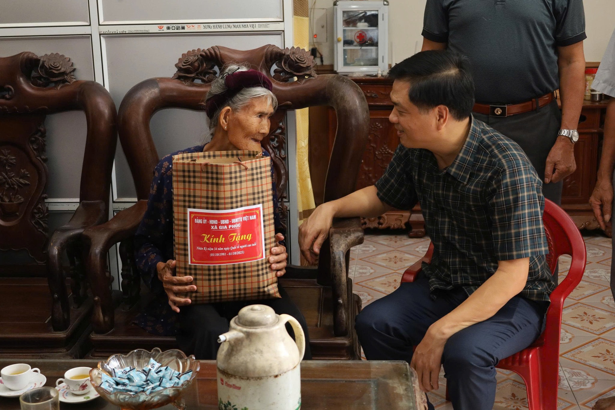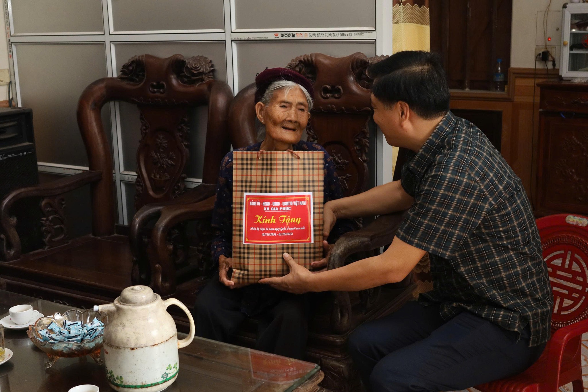 Năm nay, xã Gia Phúc có 14 cụ từ 100 tuổi trở lên, 82 cụ trong độ tuổi 95 đến 99 tuổi và 29 cụ có hoàn cảnh đặc biệt khó khăn, ốm yếu được lãnh đạo địa phương trực tiếp tới tận nhà thăm hỏi, động viên và trao tặng quà. Các đoàn công tác do lãnh đạo Đảng ủy, HĐND, UBND, UBMTTQ xã làm trưởng đoàn, cùng với cán bộ chuyên môn, trưởng thôn, ban công tác mặt trận và đại diện các đoàn thể tham gia. Tại mỗi gia đình, các đồng chí lãnh đạo đã ân cần thăm hỏi sức khỏe, bày tỏ tình cảm tri ân sâu sắc, đồng thời chúc các cụ trường thọ, sống vui, sống khỏe, tiếp tục nêu gương sáng trong gia đình và cộng đồng.