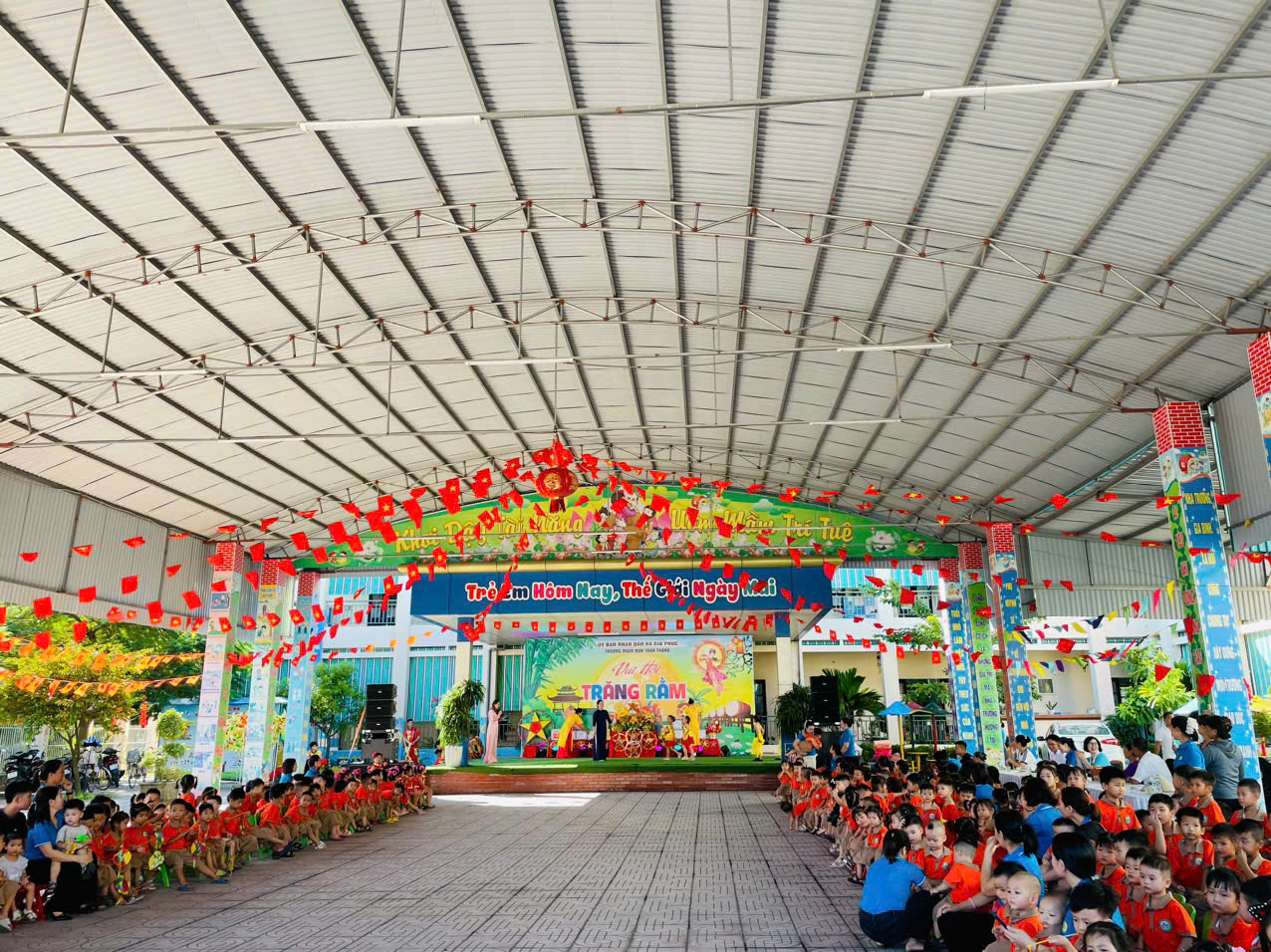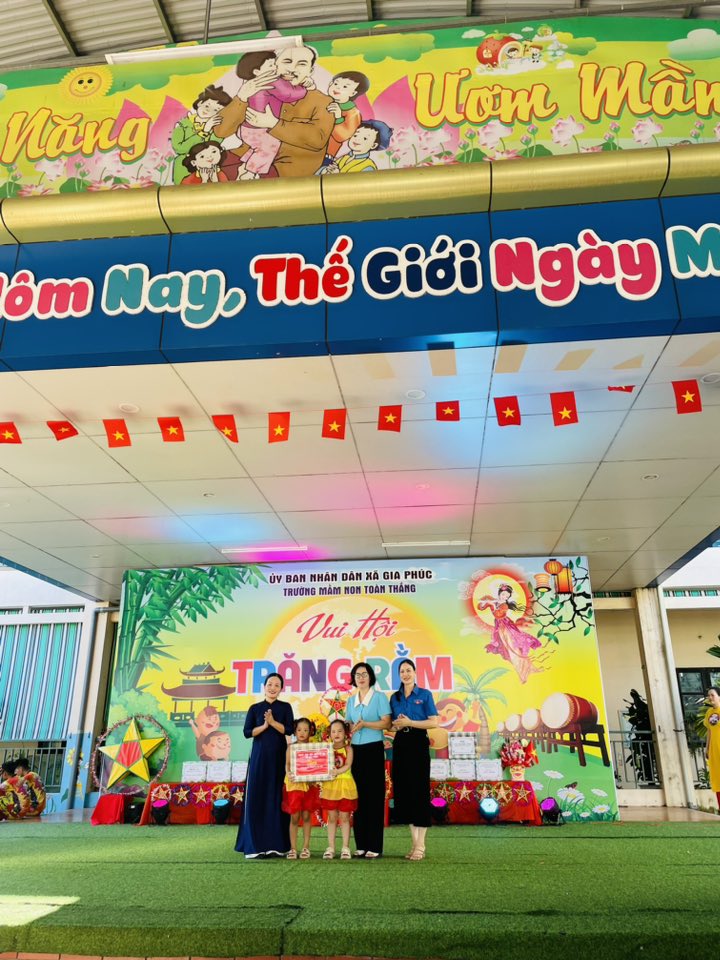 Vào lúc 15 giờ cùng ngày, Đoàn do đồng chí Vũ Thị Dịu - Ủy viên Ban thường vụ Đảng ủy, Phó Chủ tịch HĐND xã làm Trưởng đoàn đã đến Trường Mầm non Toàn Thắng để dự và chung vui chương trình “Lễ hội vui trăng rằm năm 2025” của nhà trường. Không gian trường học rực rỡ với đèn lồng, múa lân và tiếng cười trẻ thơ vang vọng. Đoàn đã trao tặng quà cho các bé của Trường MN Toàn Thắng.