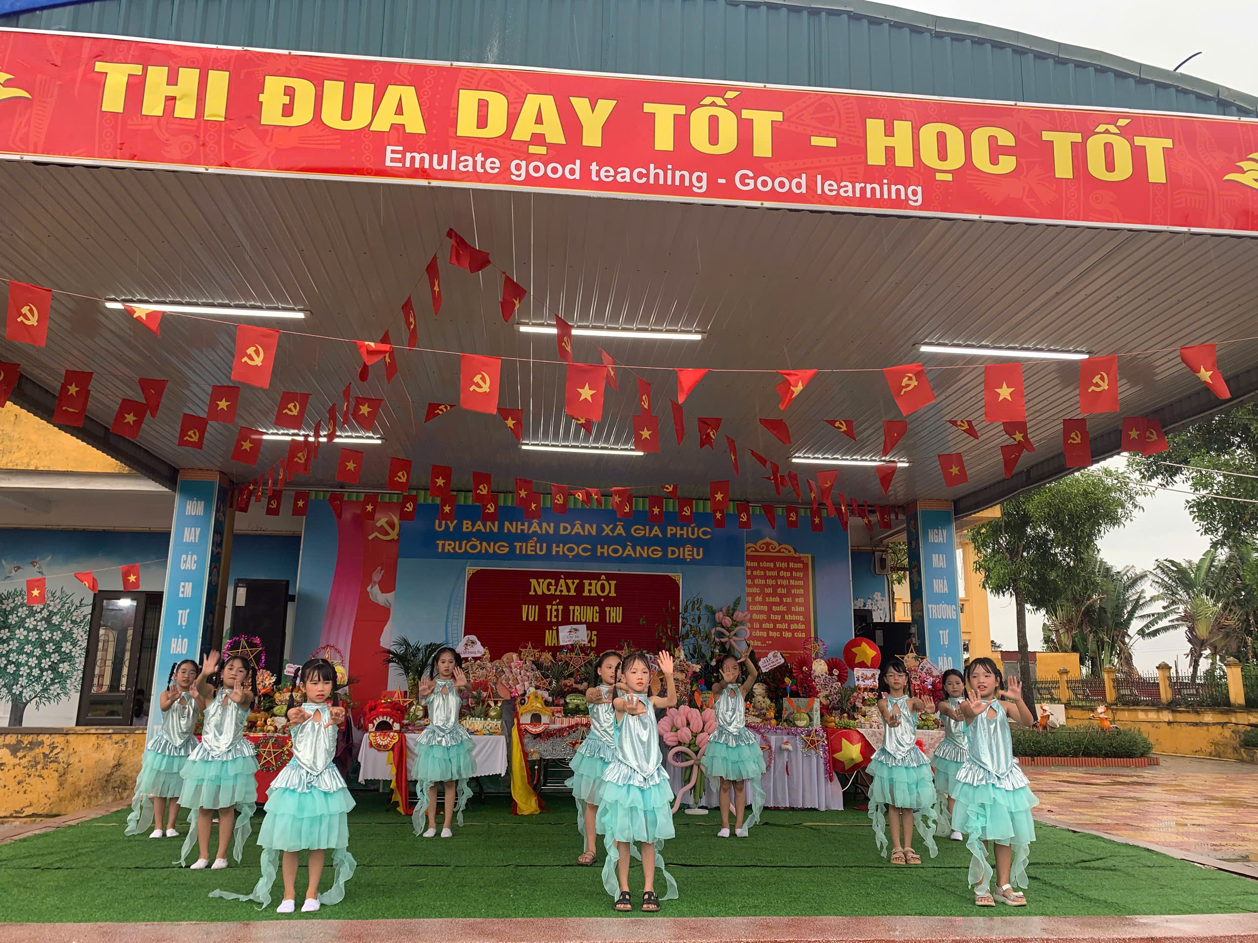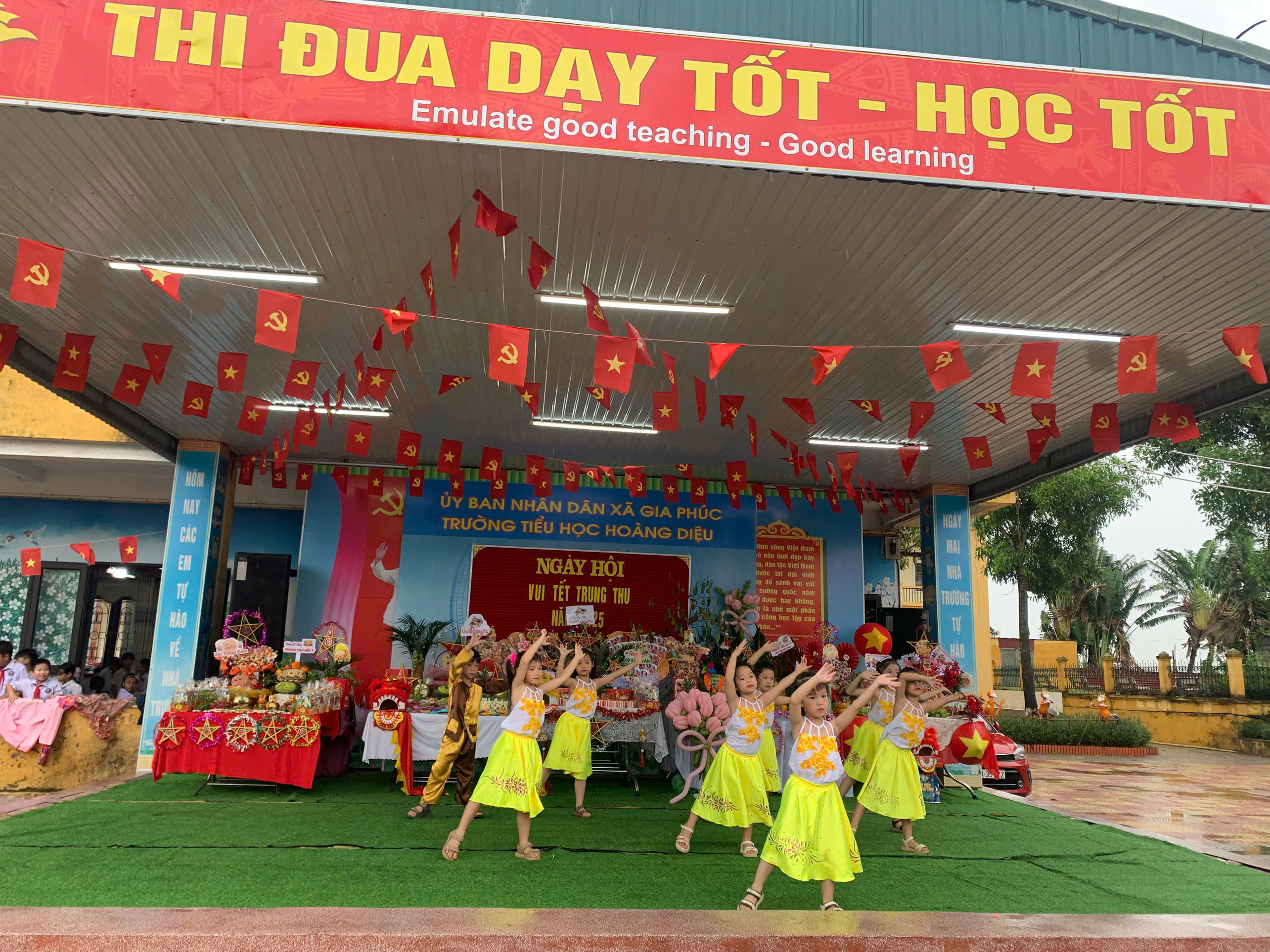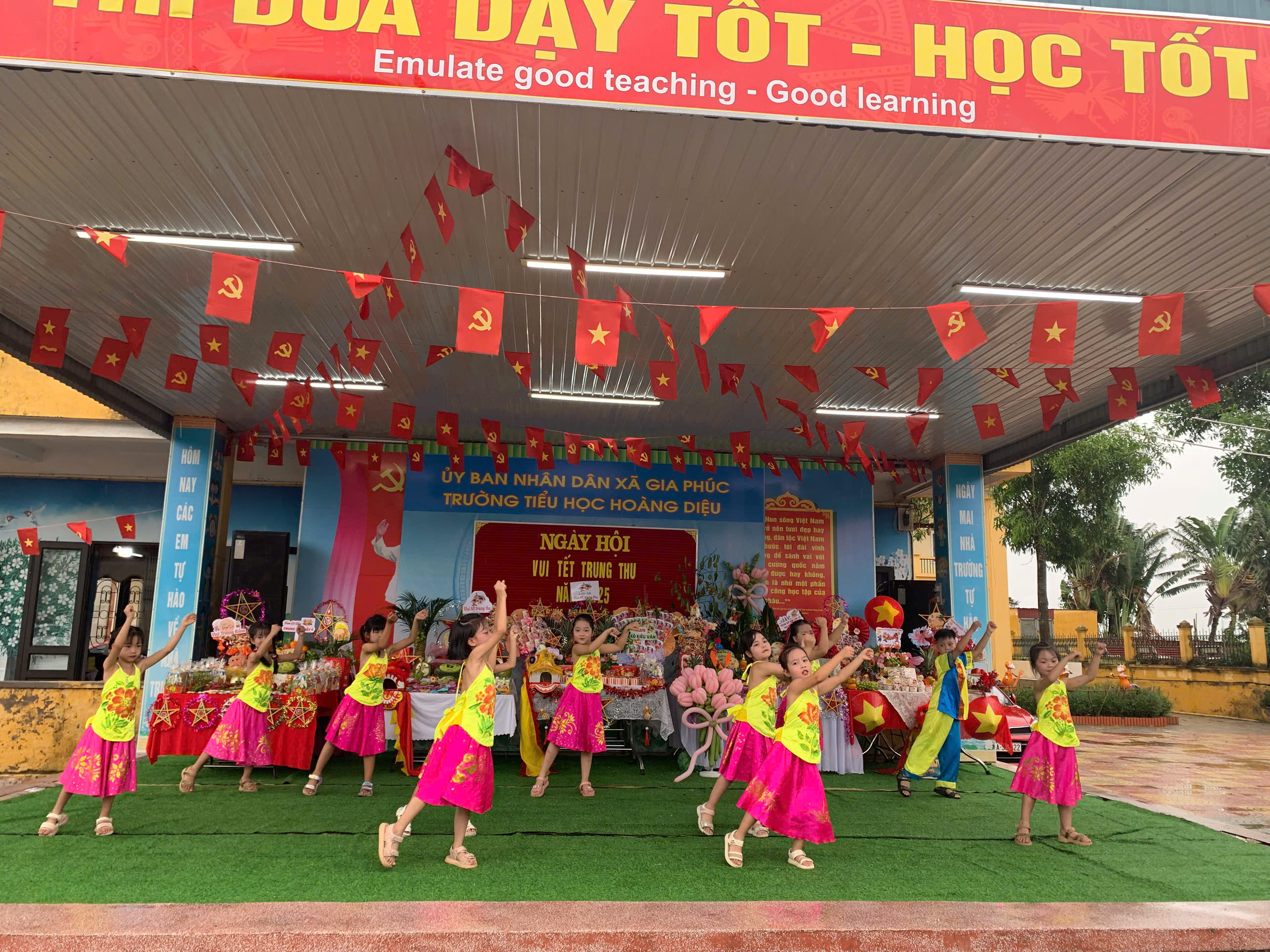 Không gian “Ngày hội vui Tết Trung thu” của Trường Tiểu học Hoàng Diệu được trang hoàng rực rỡ, tràn ngập sắc màu với nhiều mâm cỗ đẹp mắt, sáng tạo và những tiết mục văn nghệ đặc sắc do chính các em học sinh biểu diễn. Các tiết mục múa hát vui tươi, sôi động đã mang đến cho ngày hội không khí ấm áp, hồn nhiên, đậm sắc màu tuổi thơ.