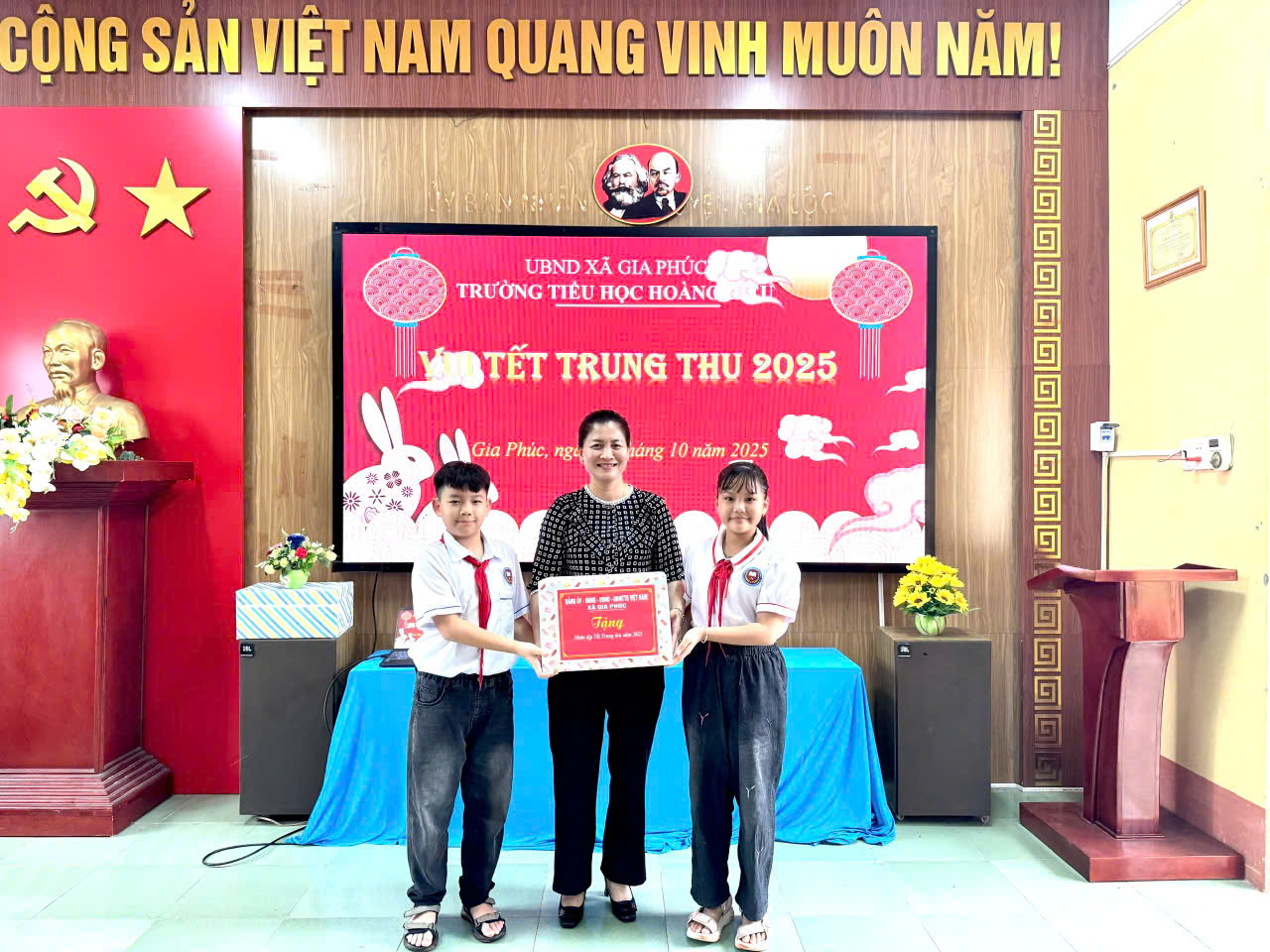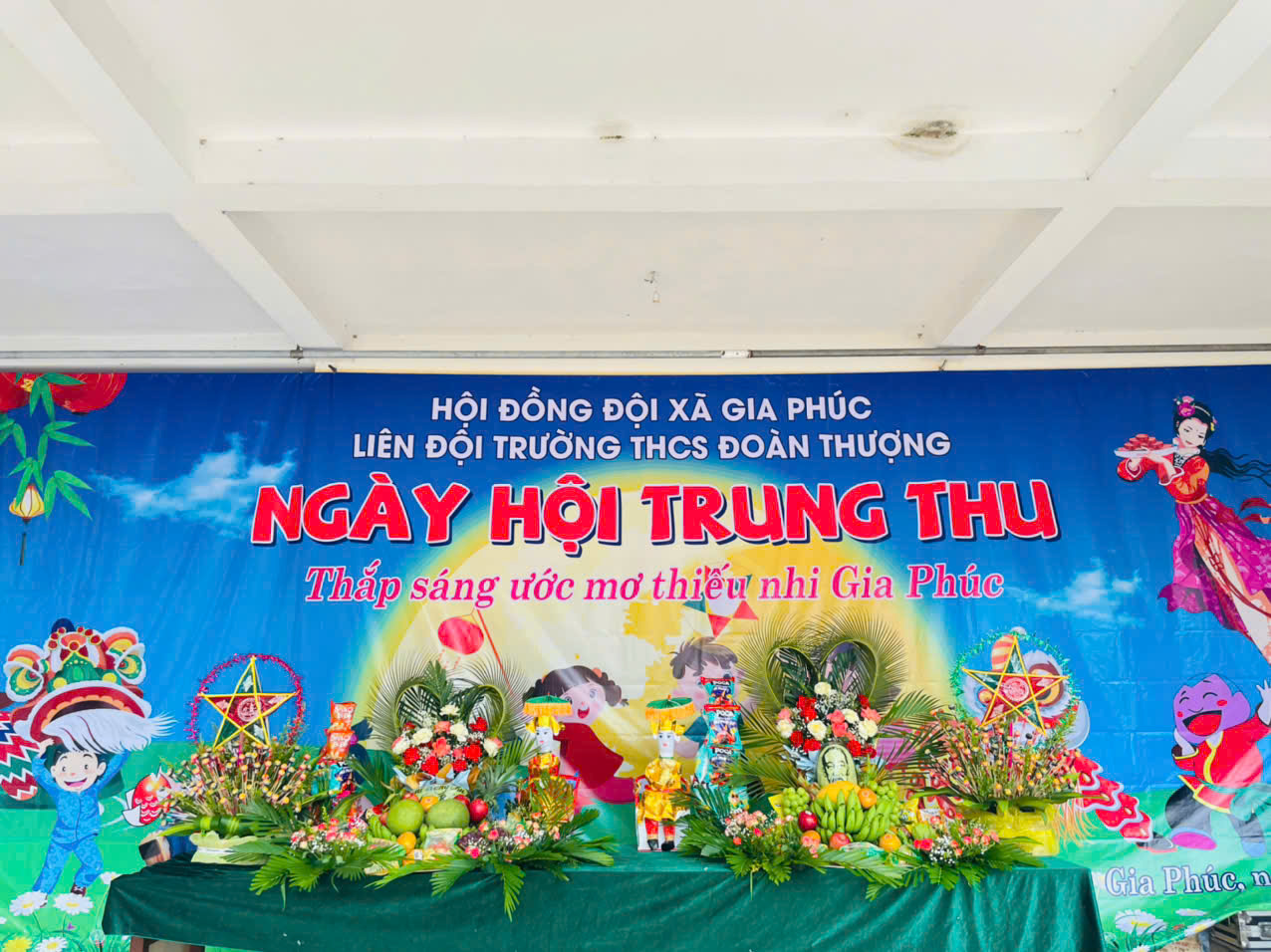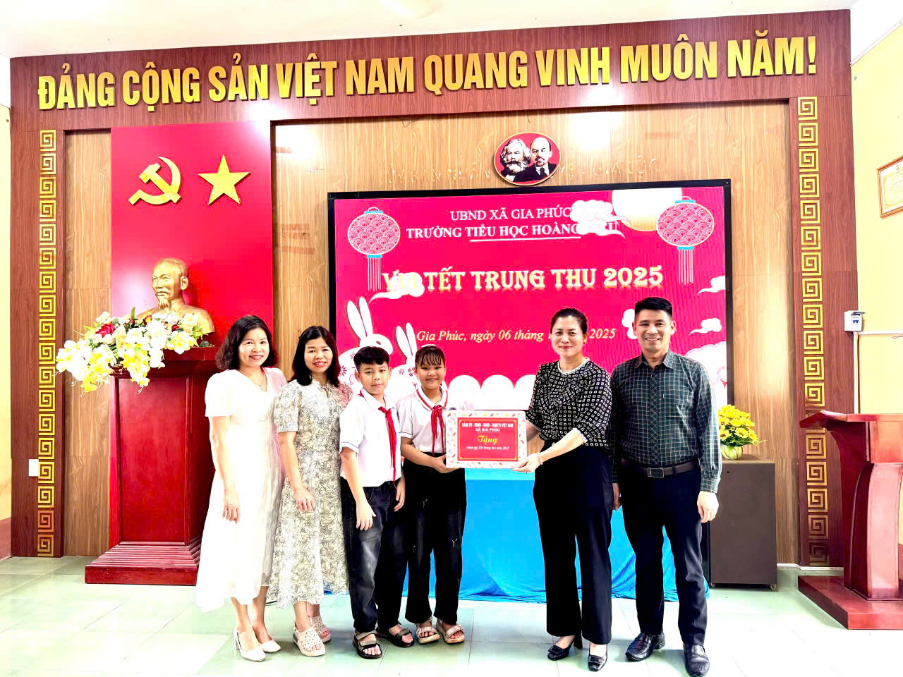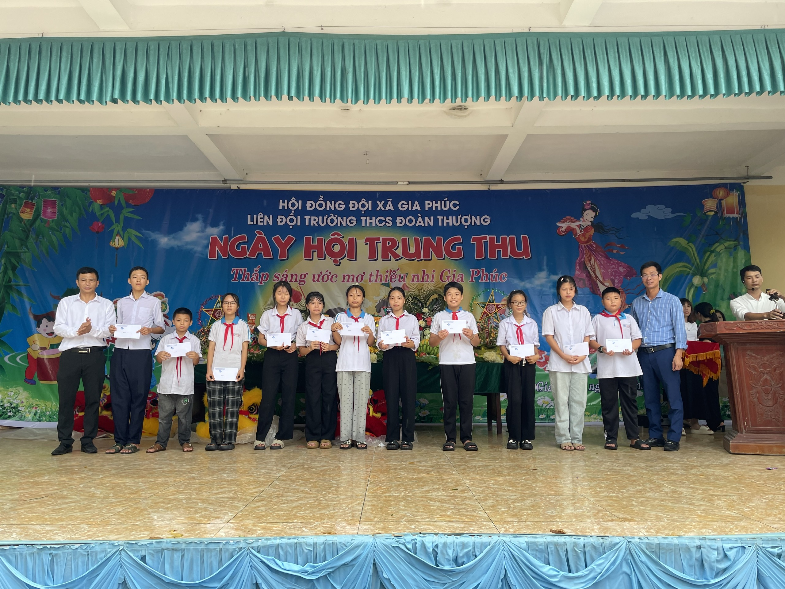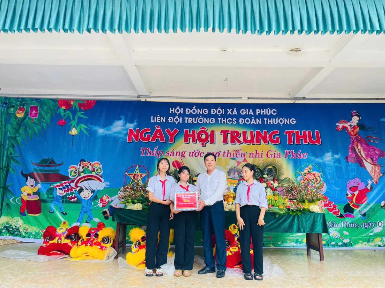 Cùng trong chiều ngày 6 tháng 10 năm 2025, tại Trường THCS Đoàn Thượng, lãnh đạo xã đã trao quà cho các cháu học sinh của Nhà trường. Chương trình “Ngày hội Trung thu – Thắp sáng ước mơ thiếu nhi Gia Phúc” của Trường THCS Đoàn Thượng cũng để lại nhiều ấn tượng đẹp với các tiết mục múa lân, văn nghệ, trình diễn mâm cỗ Trung thu đặc sắc. Đây là hoạt động mang đậm giá trị nhân văn, góp phần động viên tinh thần học tập, rèn luyện của học sinh trong năm học mới.